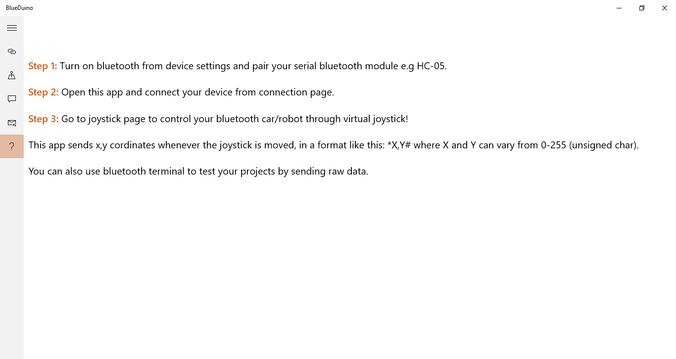 Note: This app requires hardware (Arduino, HC-05 etc) to work properly. It is specifically for hobbyists and engineering students.