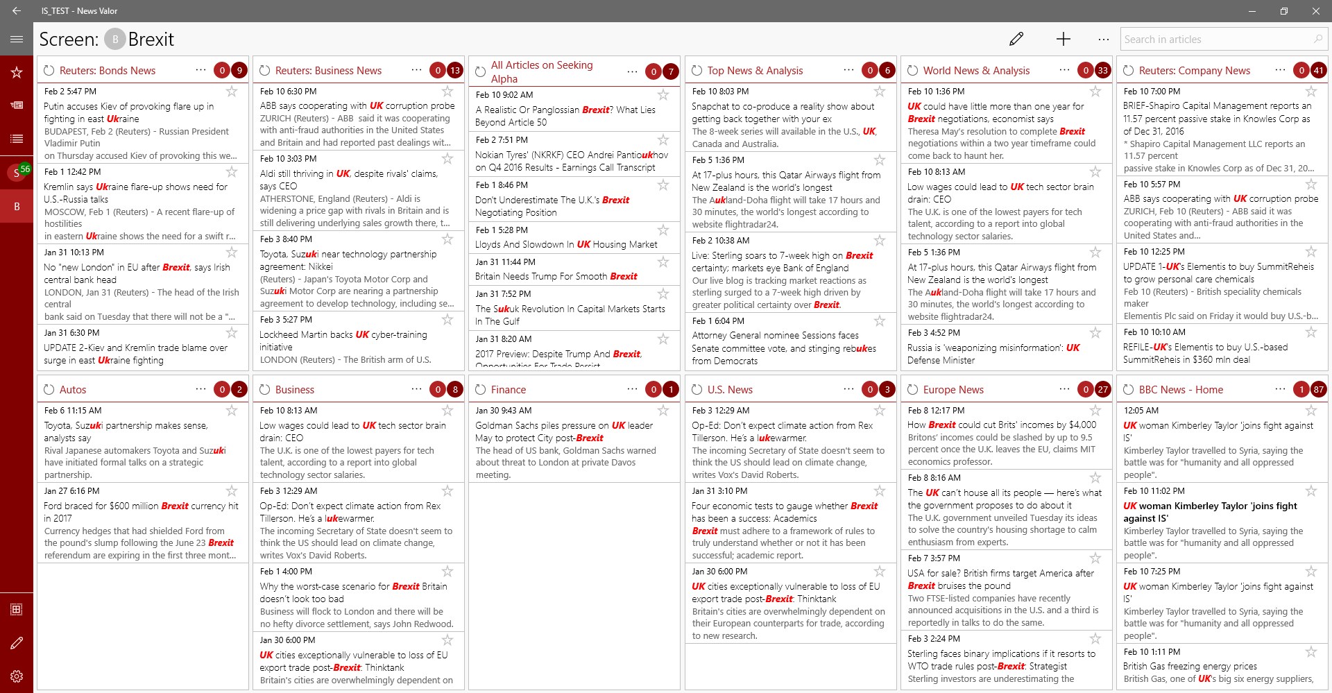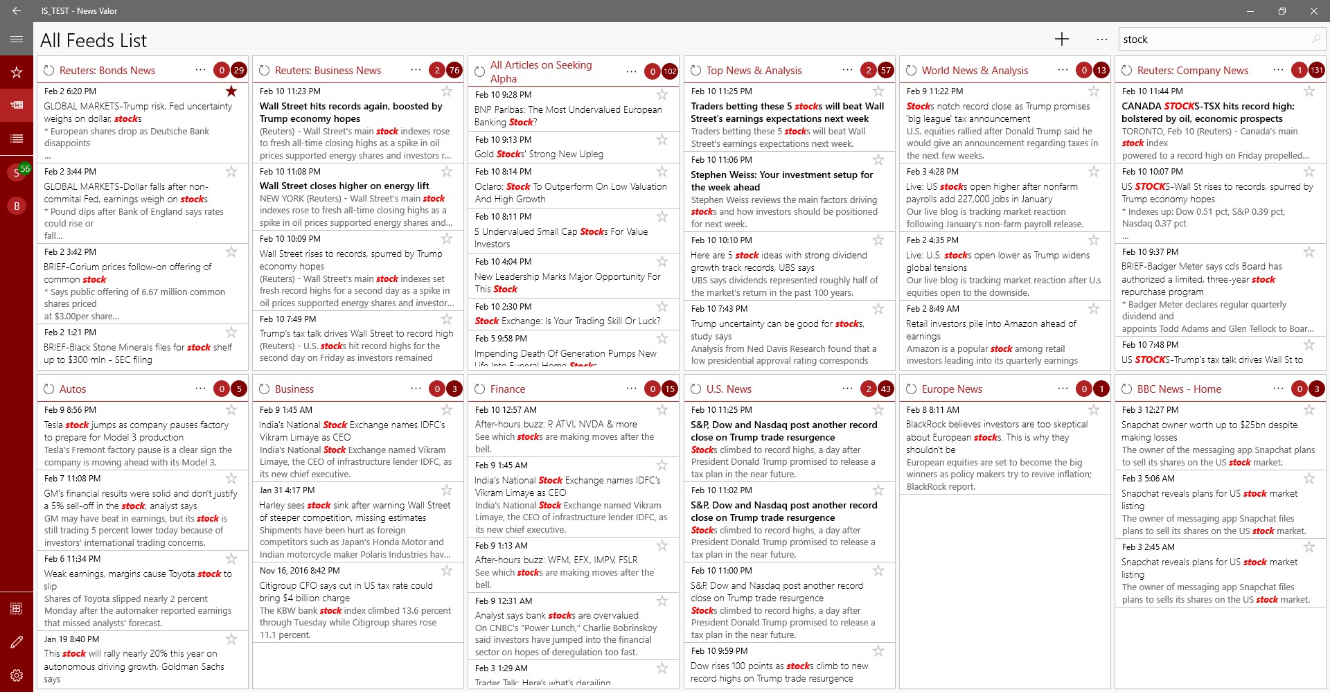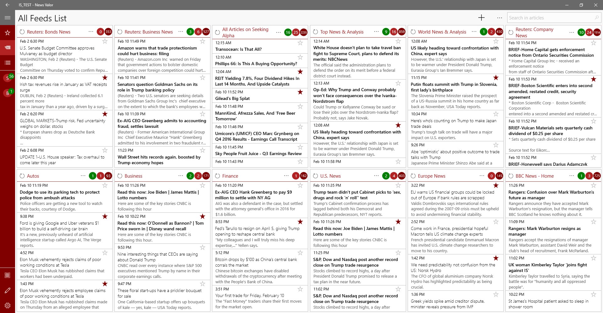 Take advantage of your PC's display with "News Valor", the easiest way to monitor multiple feed sources at once.