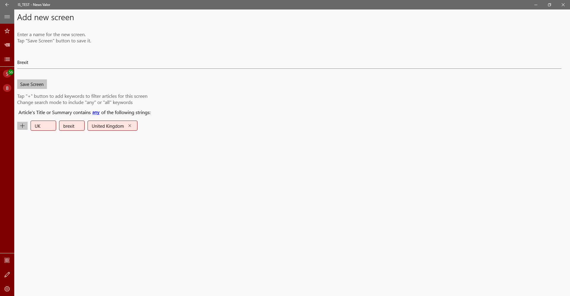 Moreover, define your news filters in Screens in order to monitor different news subjects.