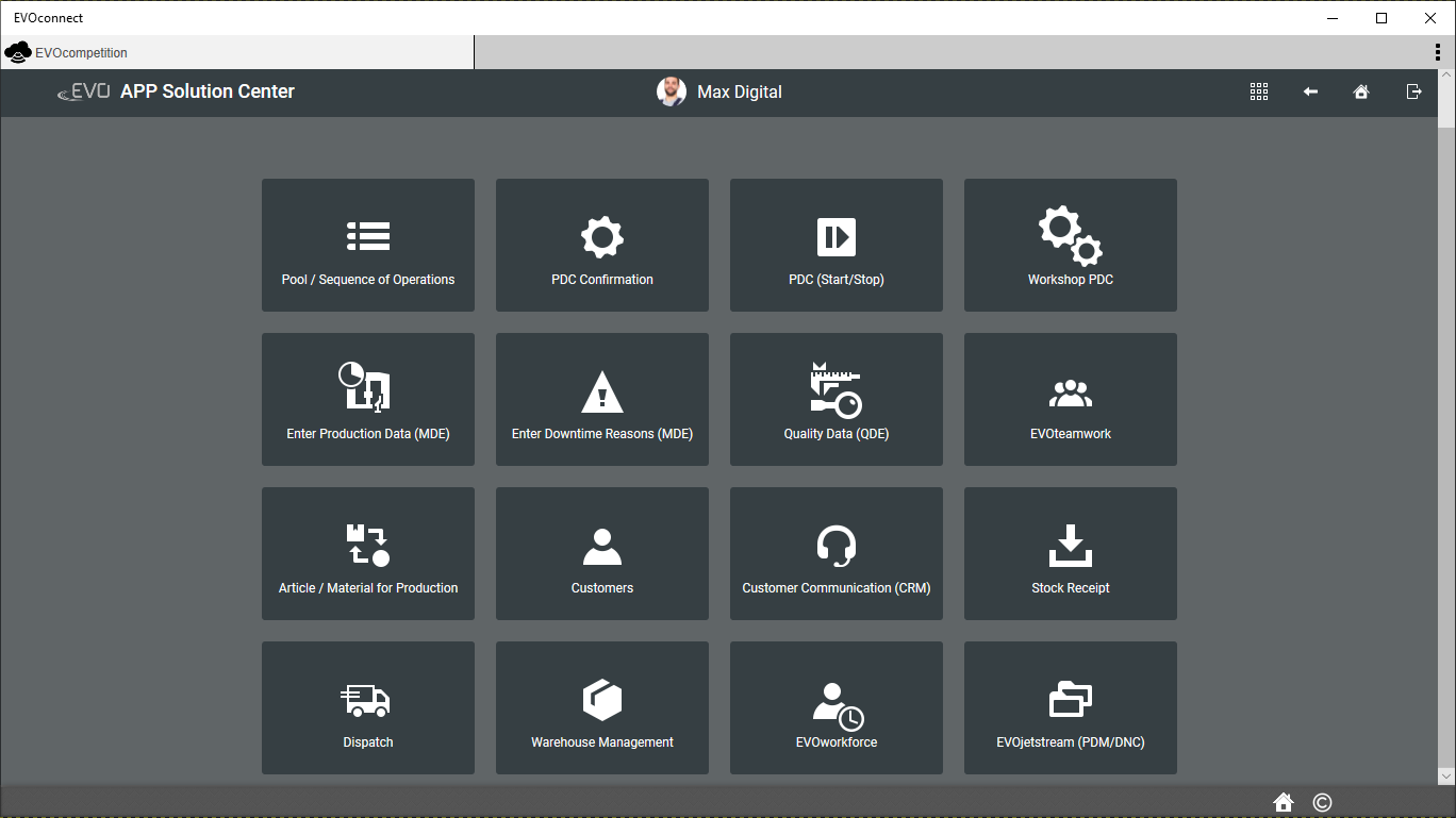 EVOconnect is our exclusive App Platform for the perfect connection between devices, users and networks. Especially for applications for Industry 4.0 this native App can run on all Windows devices (PC, Tablet).