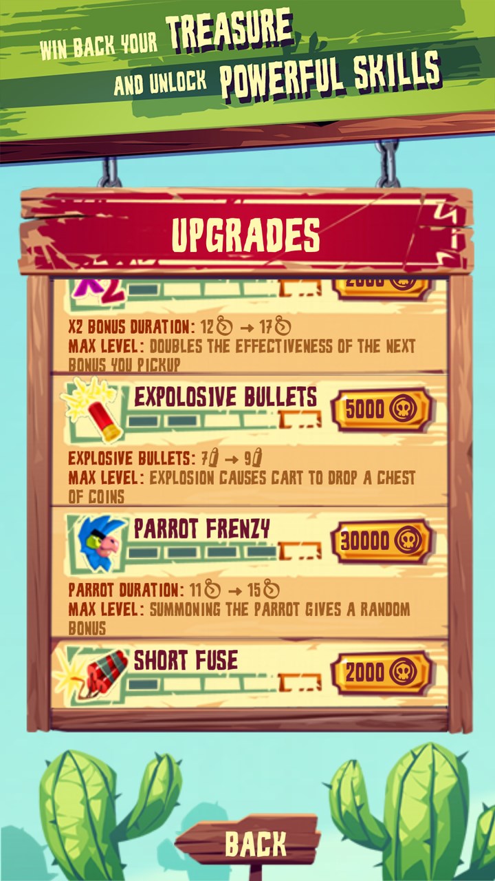 Choose among various banditos, each having unique powerful skillsGather treasures to upgrade your characters and unlock new boostsEarn numerous achievements to show off your skillsPlay in a colorful and vivid worldCompare with other players, be the best!