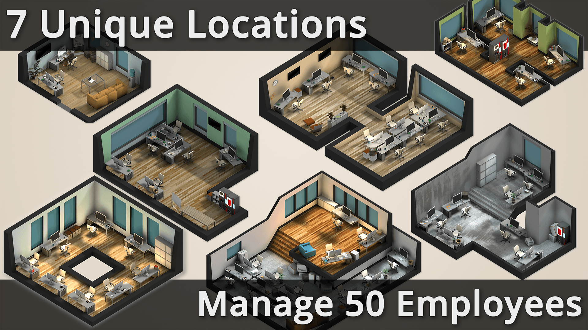 • Start on your own in a small office, and grow your gaming business to owning 7 buildings and managing 50 employees while tasking 3 independent teams of game developers to produce different projects at the same time!