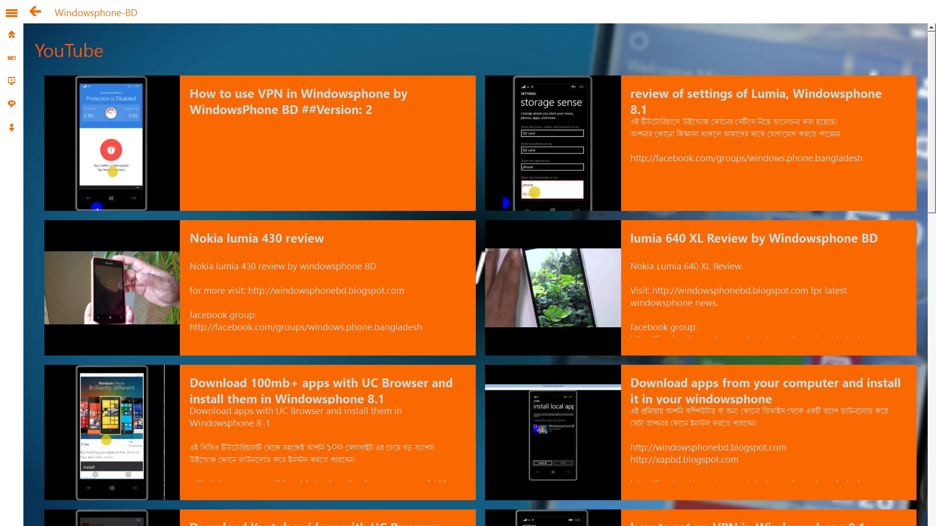 Windowsphone Bangladesh app is here ! Now you can visit our blog directly from this app. no need to search for links. Keep up to date with new tricks and tips. play youtube tutorials directly from the app and many more !