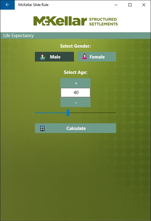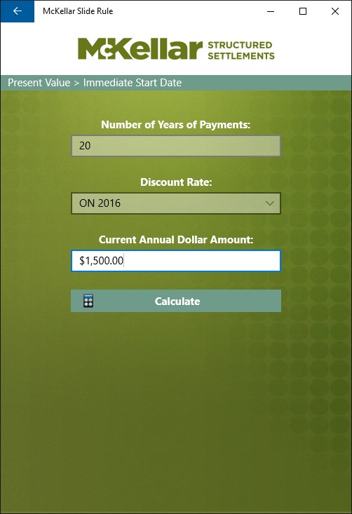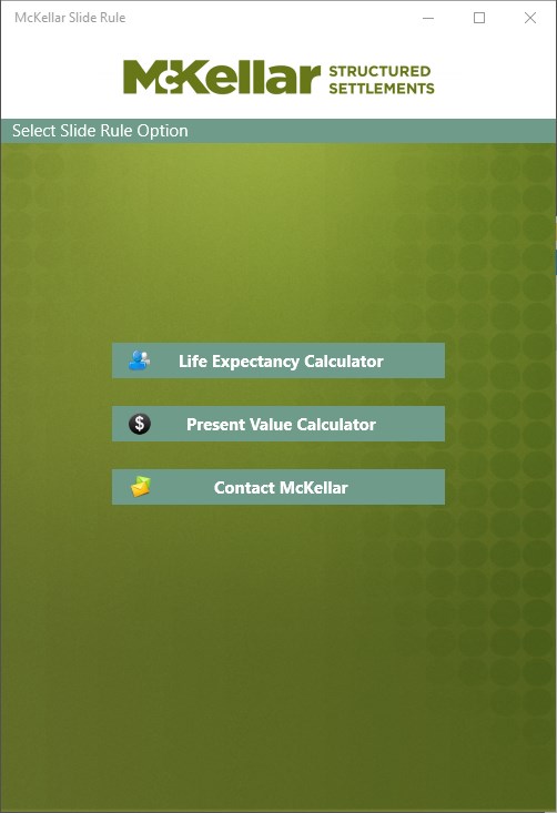McKellar Structured Settlements Inc. - Canada’s leading provider of structured settlements - is pleased to provide the McKellar Slide Rule application for Windows 10. The McKellar Slide Rule is a “must have” application for anyone involved in the field of personal injury claims.