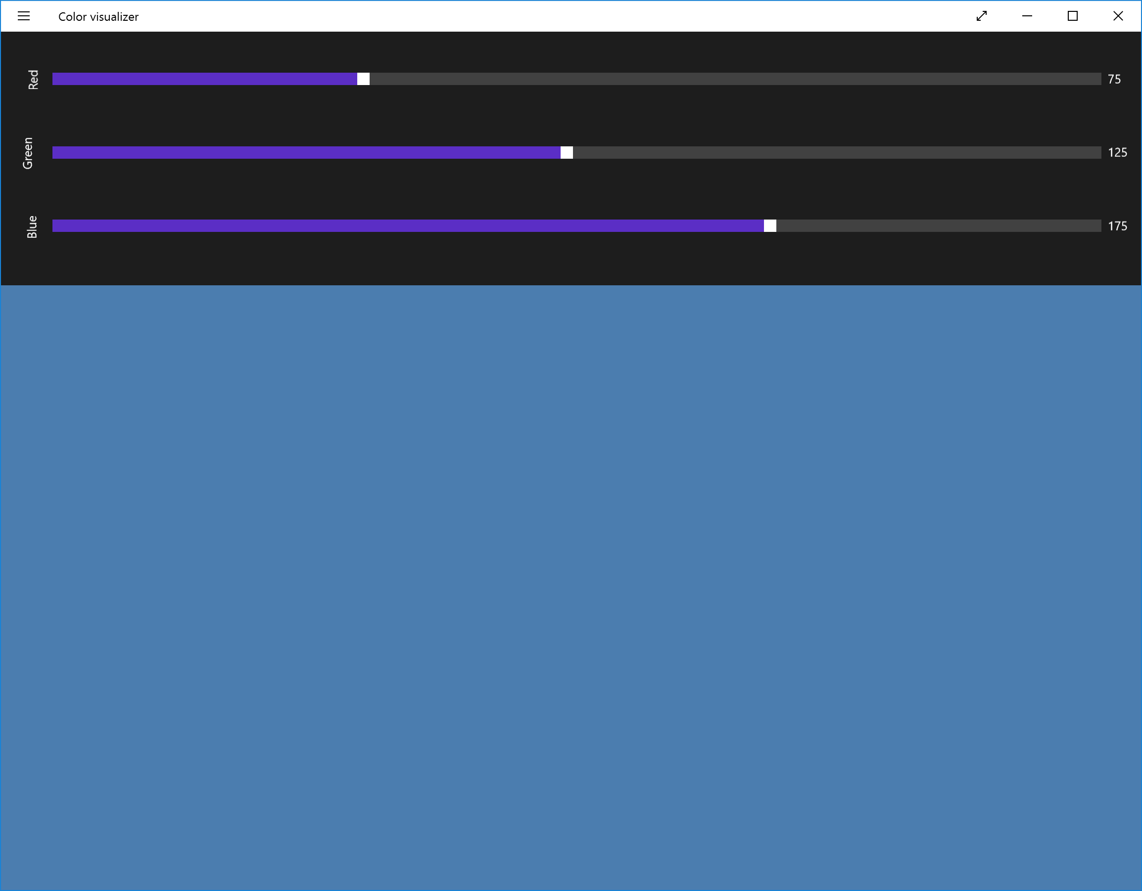 Allows you to visualize colors defined by red, green, and blue values.