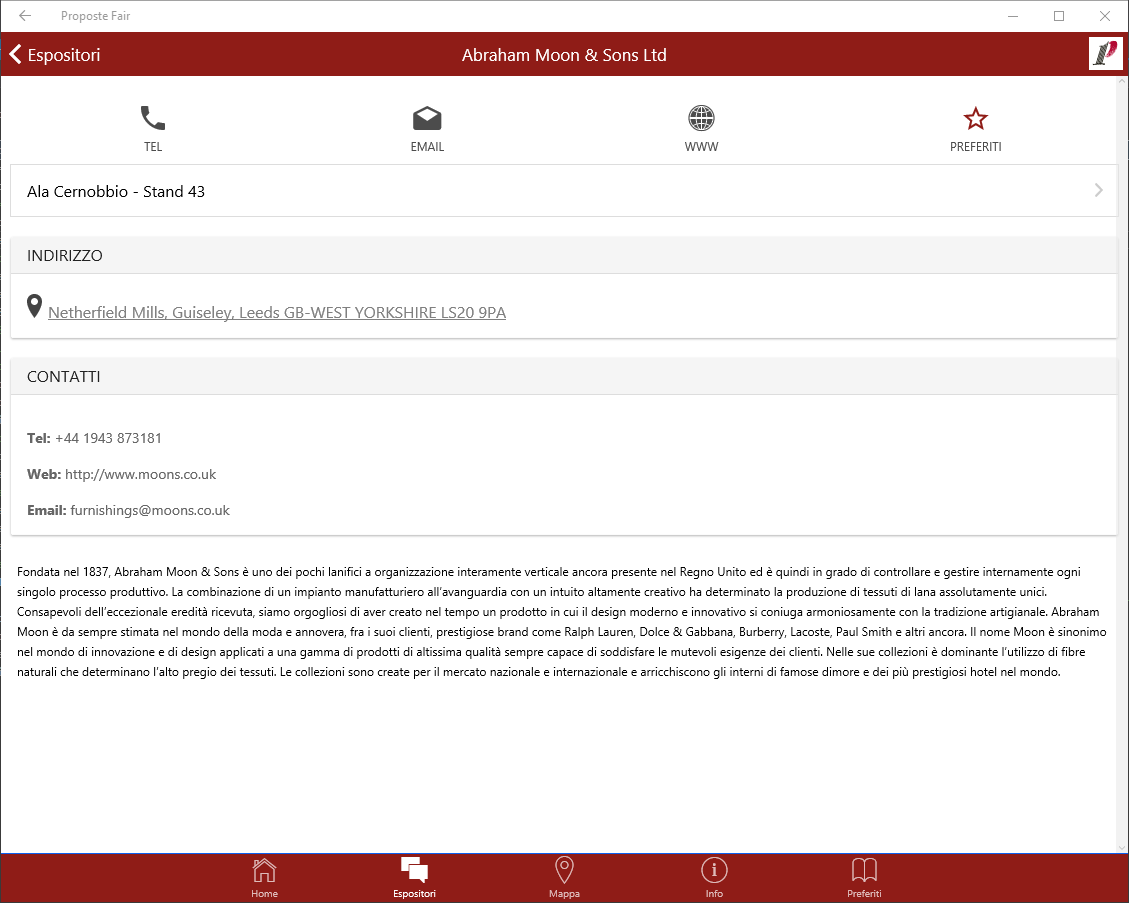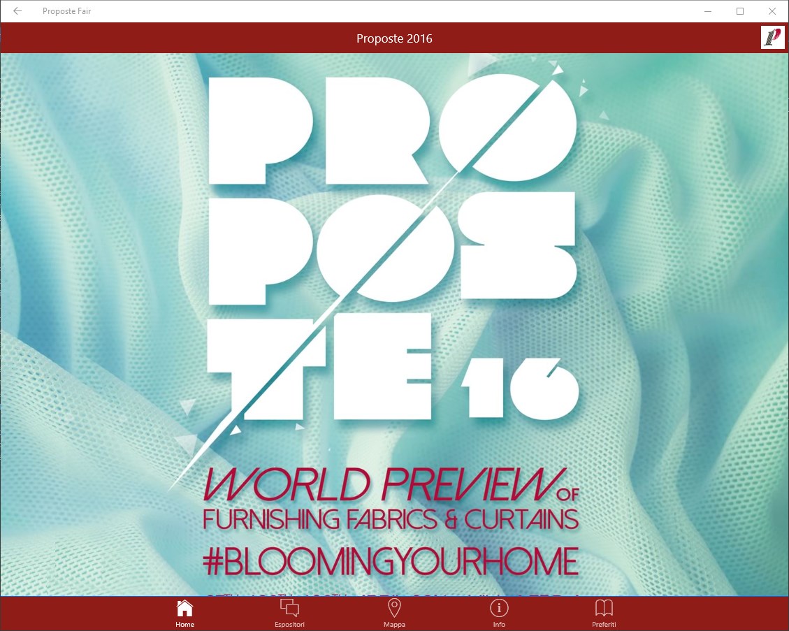 The Official PROPOSTE Fair app, the world preview of furnishing fabrics and curtains that takes place every year at Villa Erba in Cernobbio (Como), aims to be a useful travel companion for visitors to the fair, who will be able to: