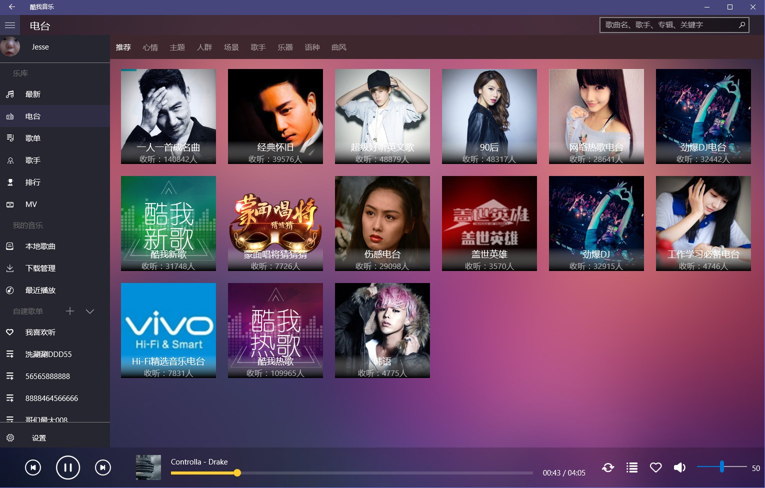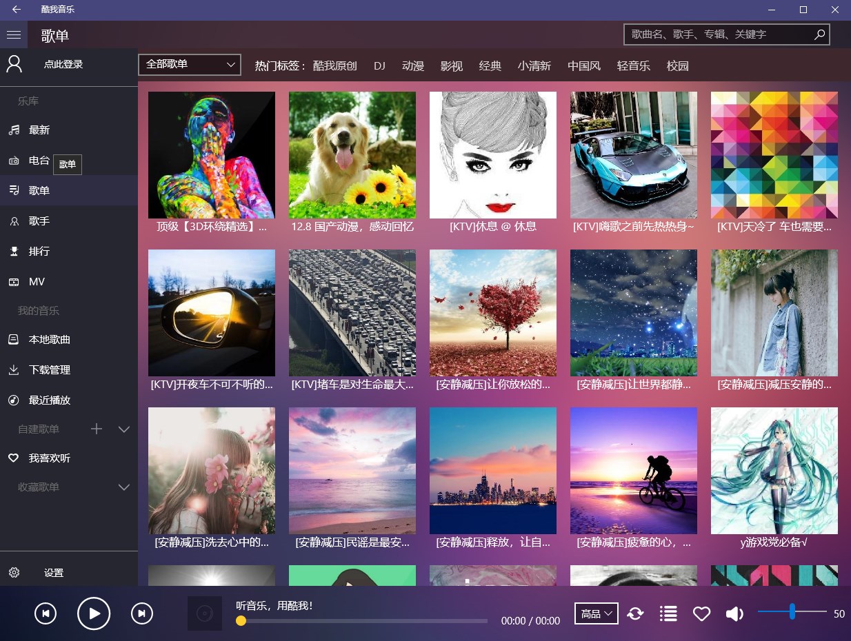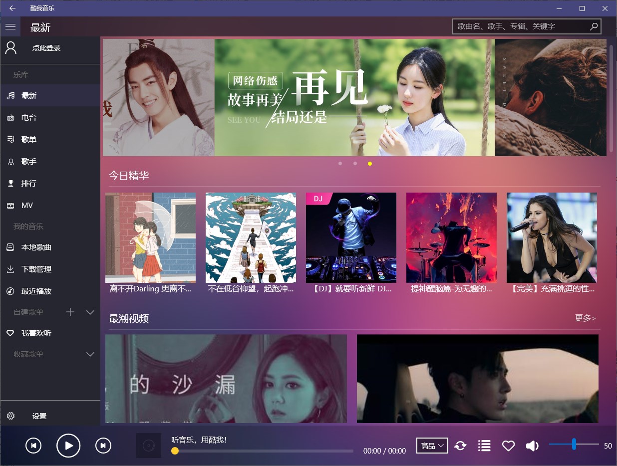 听音乐,用酷我! 酷我音乐-深受欢迎的音乐播放器。酷我音乐for Windows10 是酷我公司专门为Windows10 UWP 平台打造的音乐客户端,百万高品质正版音乐,免费试听缓存,海量无损音质歌曲,随时随地想听就听。