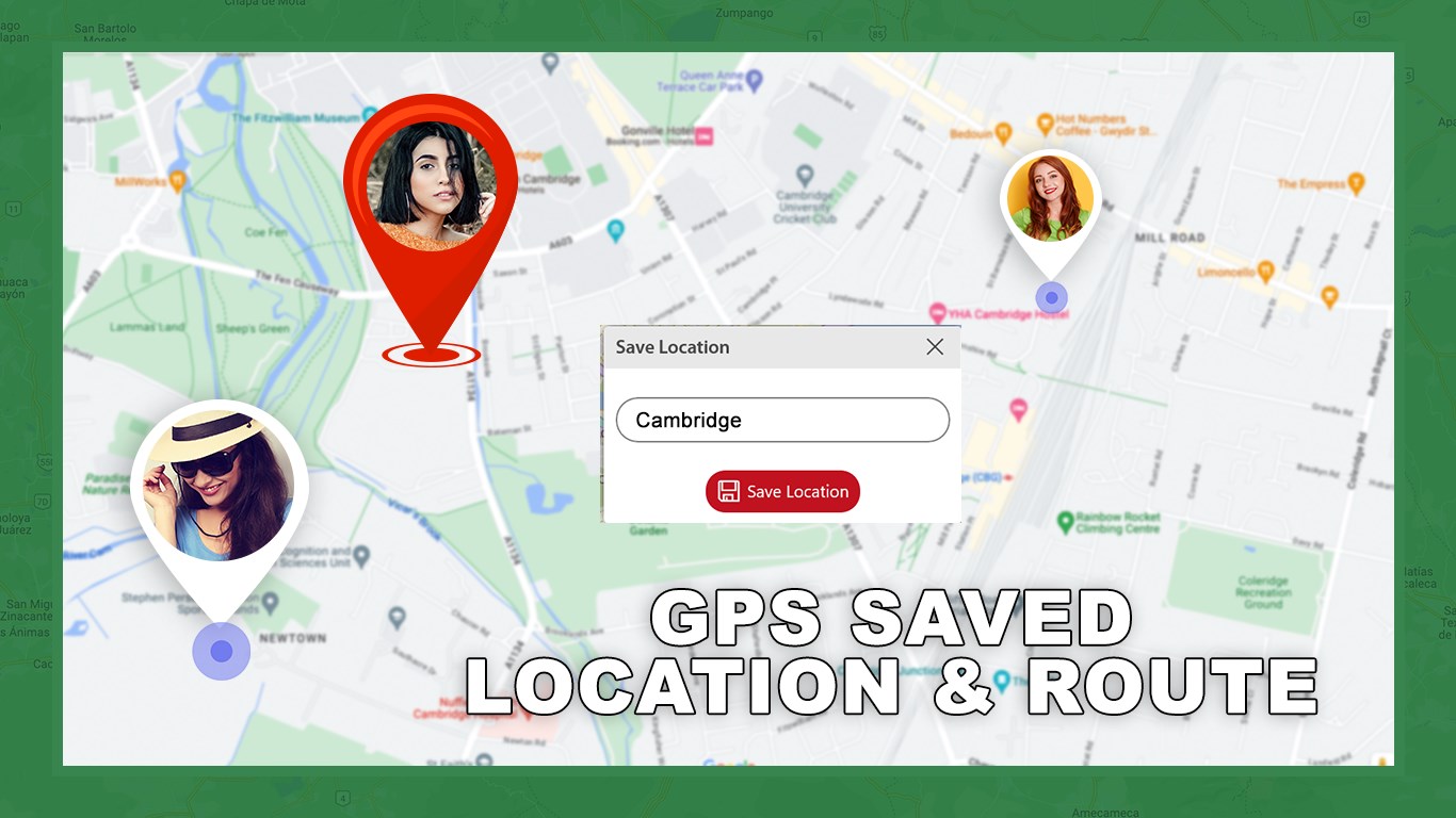 Locate your family, friends, vehicles as well as your personal corner on the maps and store them on your device forever.