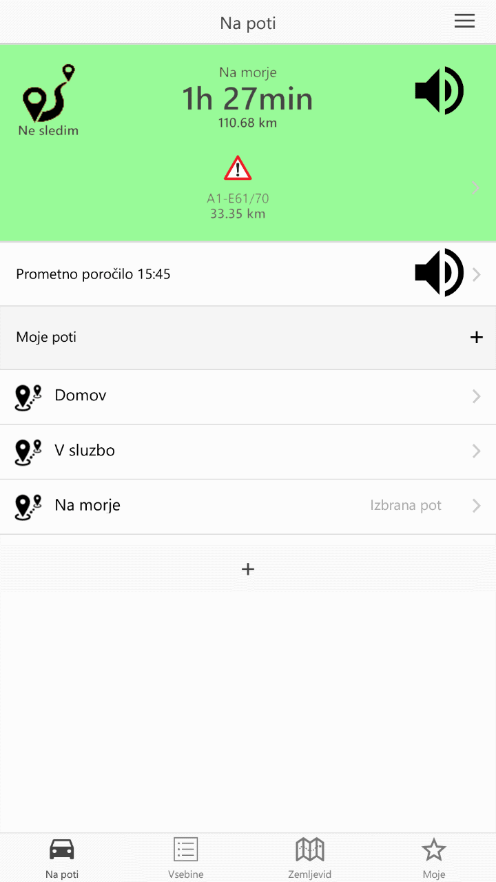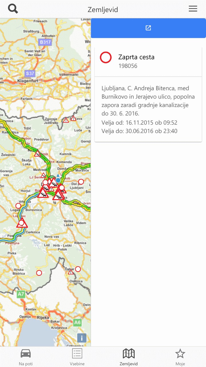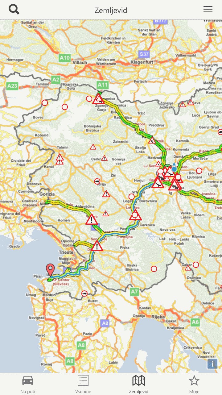 The DarsTraffic+ app allows you to be up to date with the current situation on all important roads in Slovenia. The app includes updated traveler times and traffic density, traffic news, traffic cameras, rest areas and their offer. It is designed for drivers to use it safely in their vehicles while driving. For an uninterrupted and safe driving experience check out the useful information concerning tolls road passes and the traffic calendar. Check your route and live information on the up-to-date map of Slovenia. The source of information is national Traffic Information Centre.
