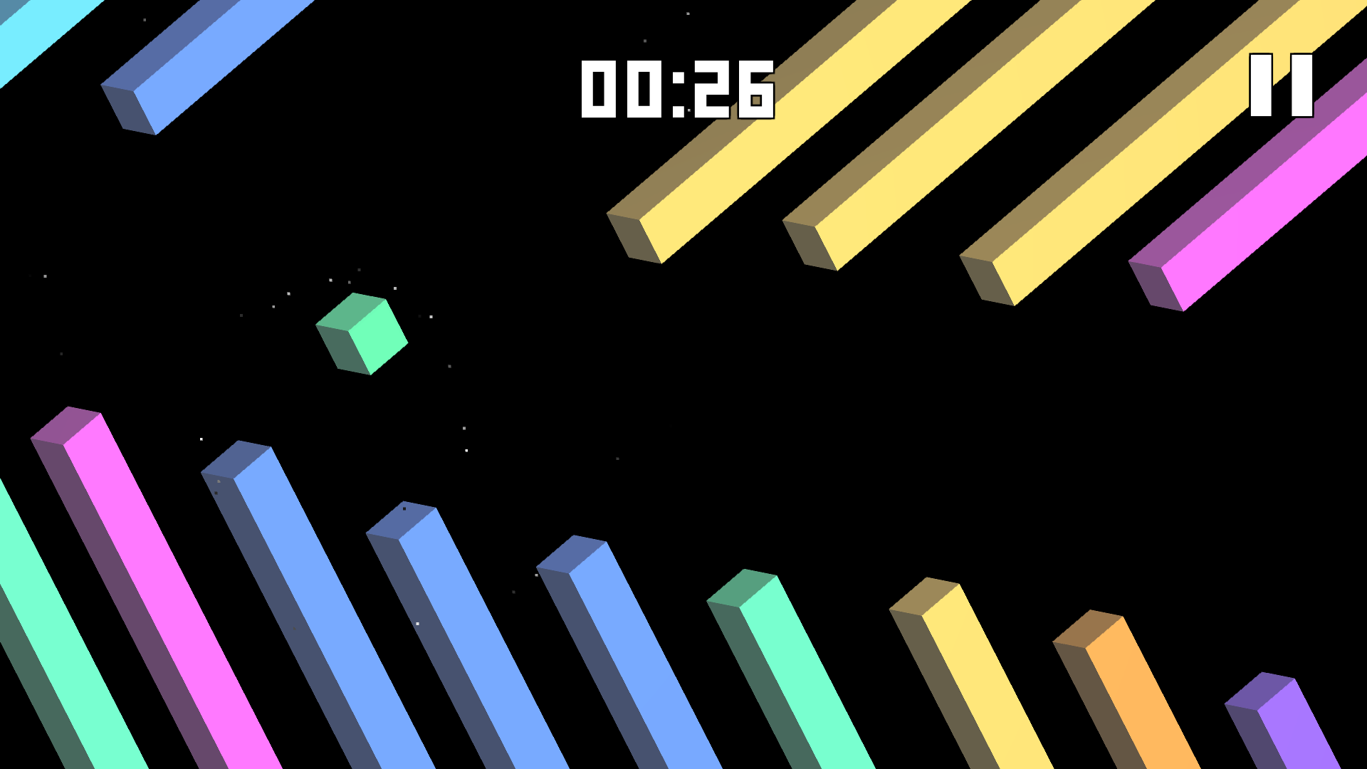 Your goal is to keep the cube on it's way against a randomly created and endless world. If you jump to high, you're gone! If you jump to late, you're gone! And if you get stuck, you're gone again!