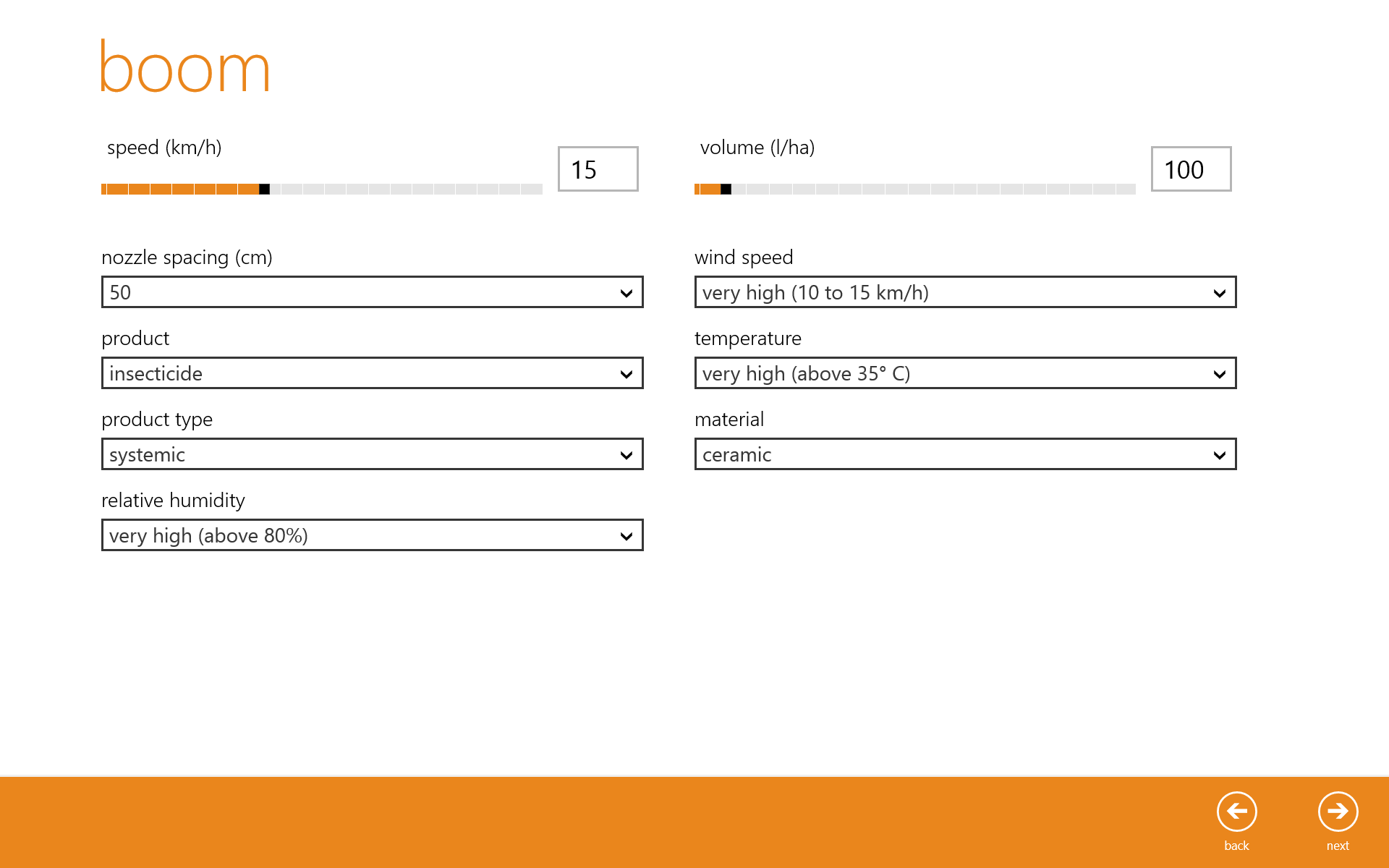 Based on the weather, agronomical and operation variables entered, Jacto Smart Selector makes a quick selection of possible nozzle models to be used. The logic used to develop it comes from Jacto’s long experience in offering solutions for Agrochemical Application Technology.