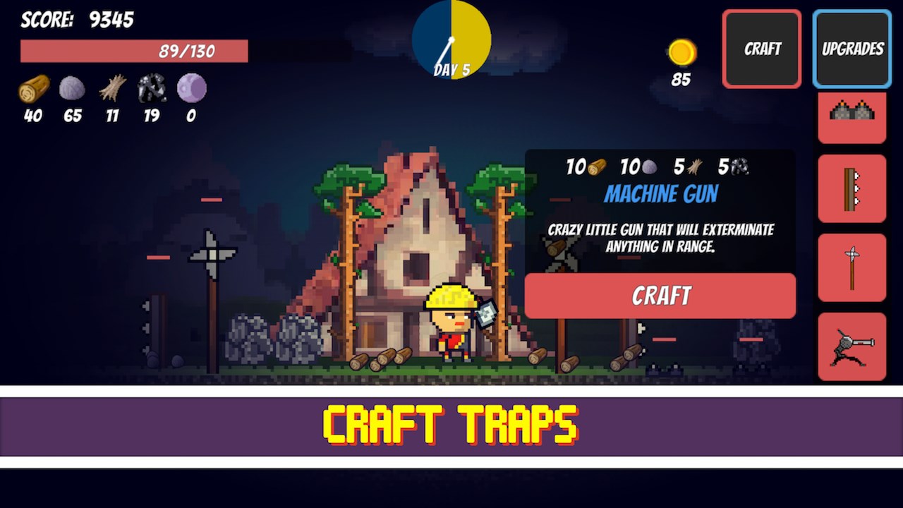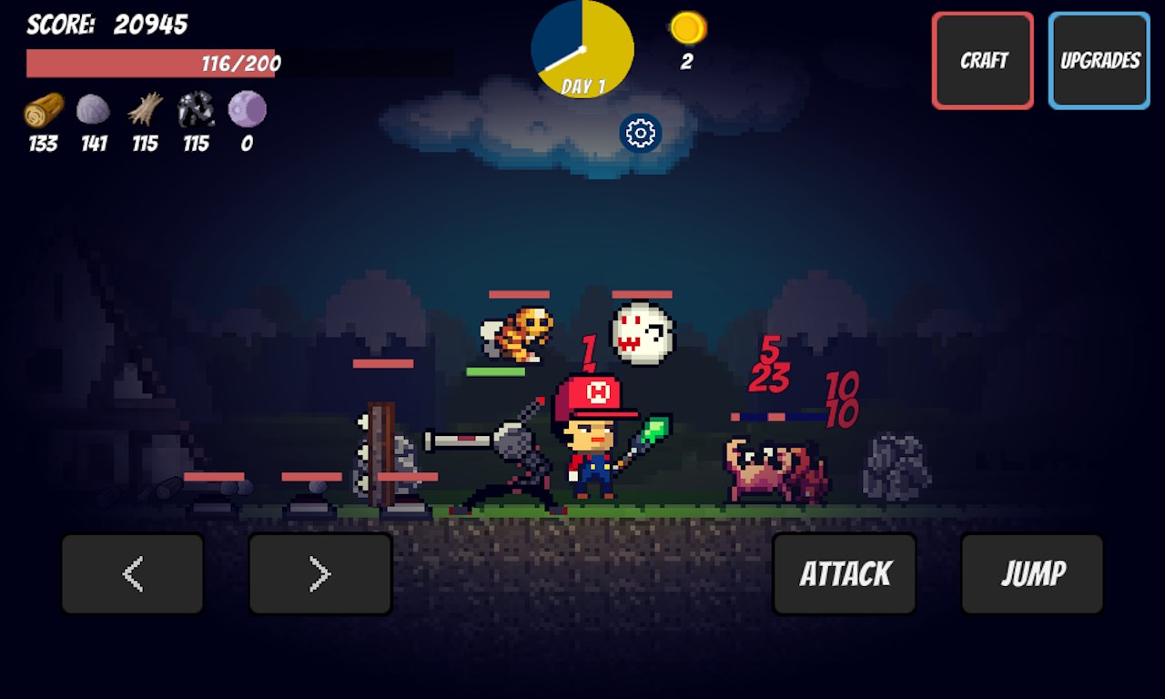 - over 30+ items to discover and upgrade - lots of monsters- gather materials- craft traps to survive- leaderboard - exciting retro pixel graphics