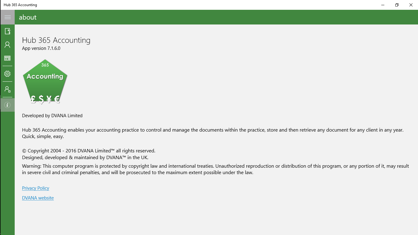The Accounting app forms part of the larger Hub 365 system by DVANA and forms the accountants document management section of the system.