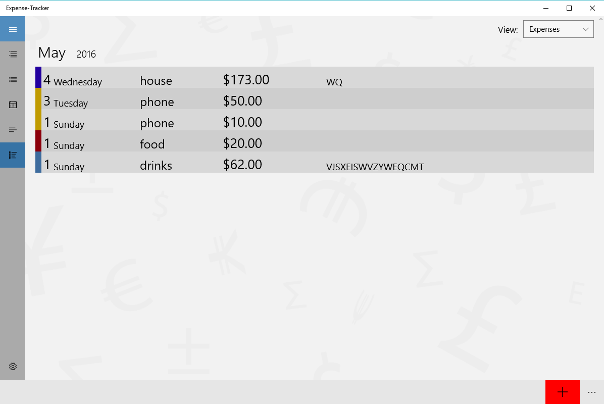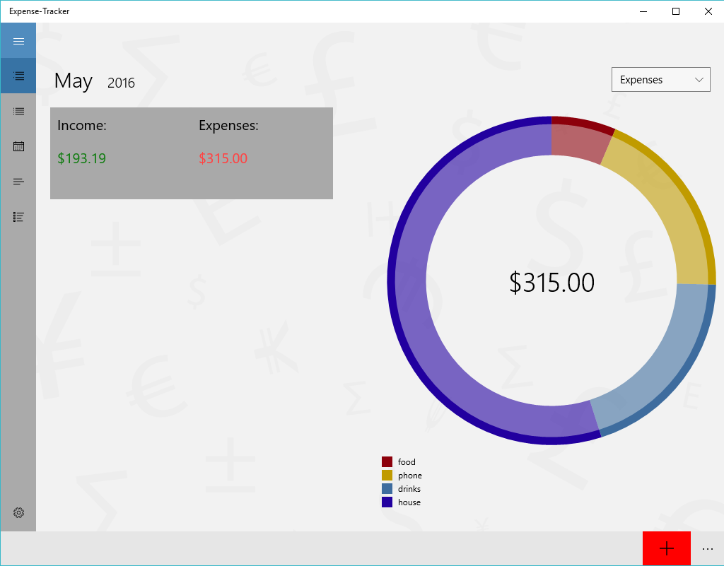 Track expensesTrack incomeCreate different categoriesGraphs of expenses and incomeLife tileChoose your own currency