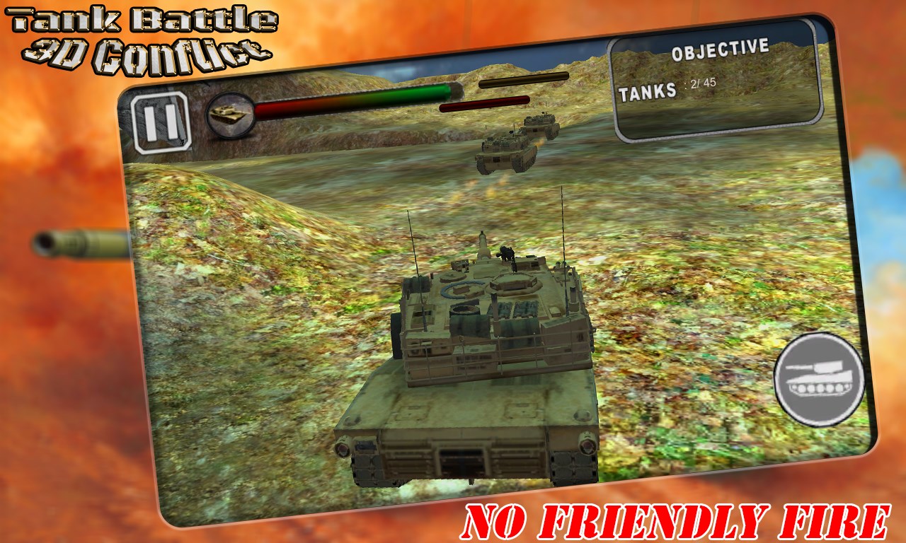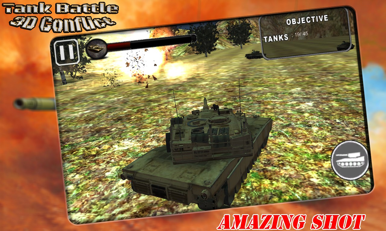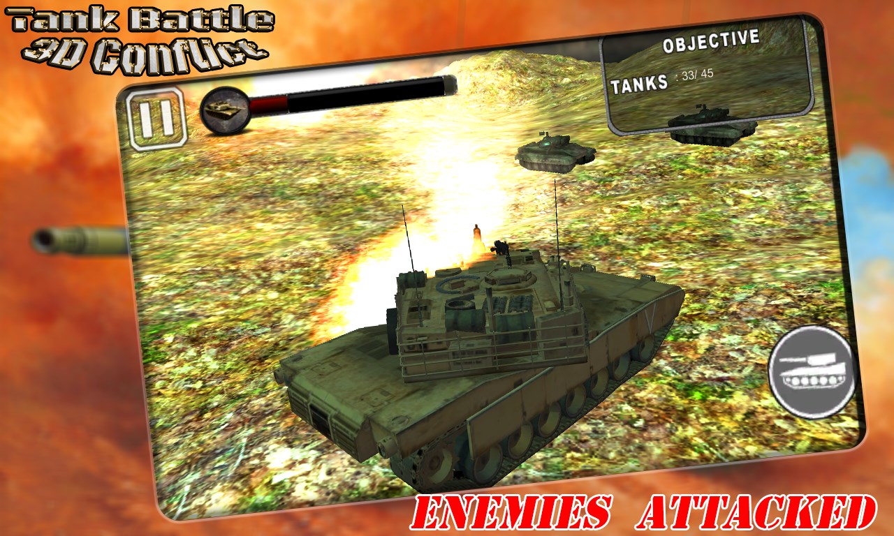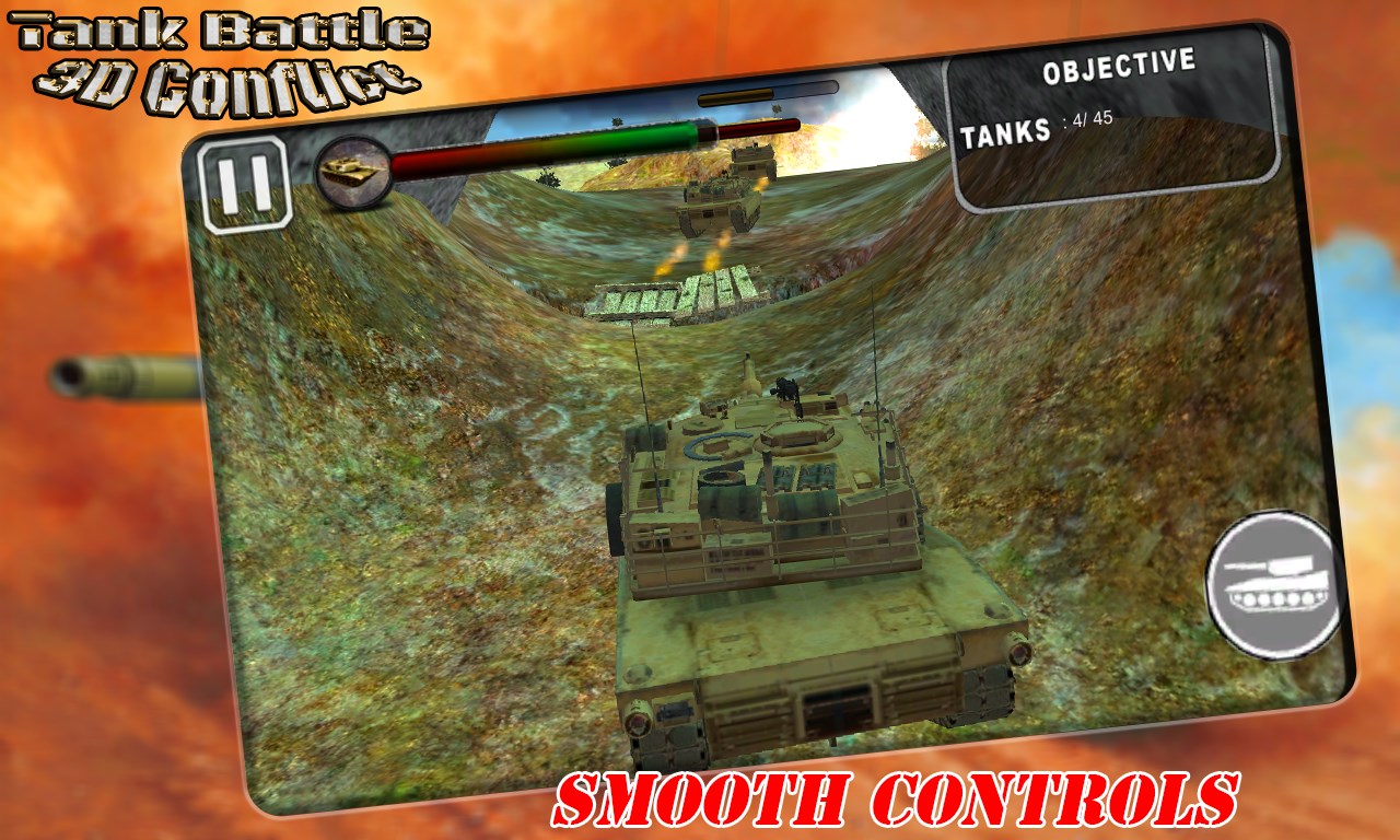 Tanks Battle 3D Conflict is a 3D tank shooting game to challenge your strategy thinking, tank aiming, and dodging skills. In Tanks Battle 3D Conflict you drive your tank inside 3D Mountain to destroy the Enemy Tank and highly advanced machinery. Your tank is to destroy enemy tanks as many as possible while getting survival as long as possible.