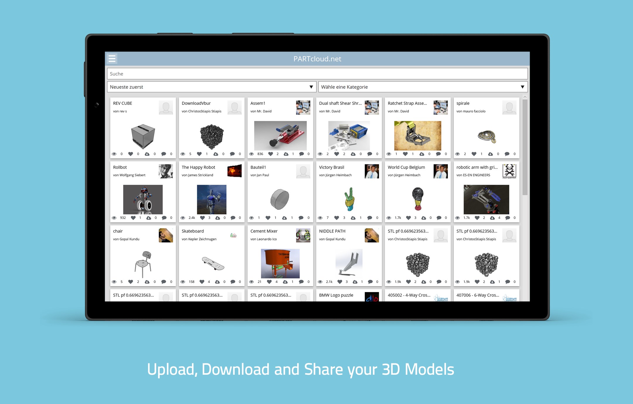 Upload your CAD models for free on PARTcloud.net and show your 3D models to your friends and co-workers with the PARTcloud.net APP