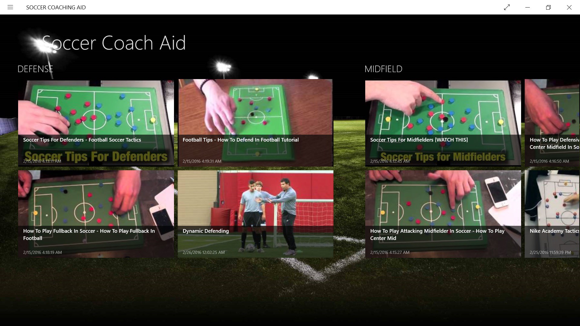 Learn different techniques and improve your coaching knowledge. Videos of different soccer tactics, ideas and skill improving techniques, Just to help some of our soccer Coaches out there. This app would save you a lot of time, like time you would spend on the web trying to find content that's already in the app.