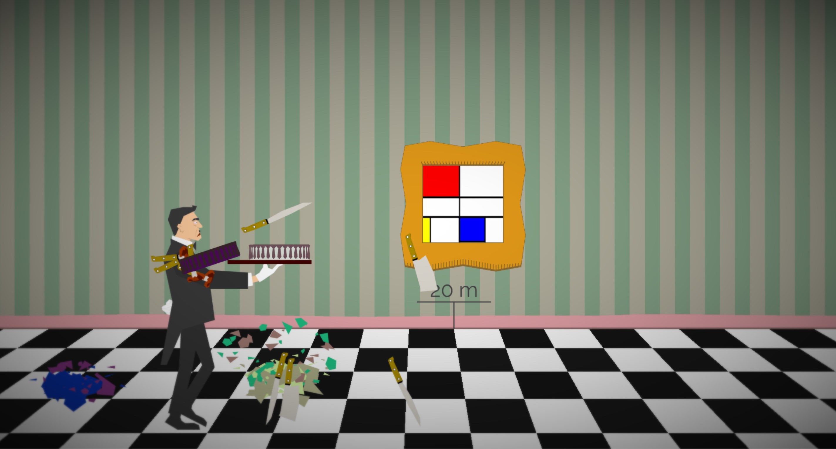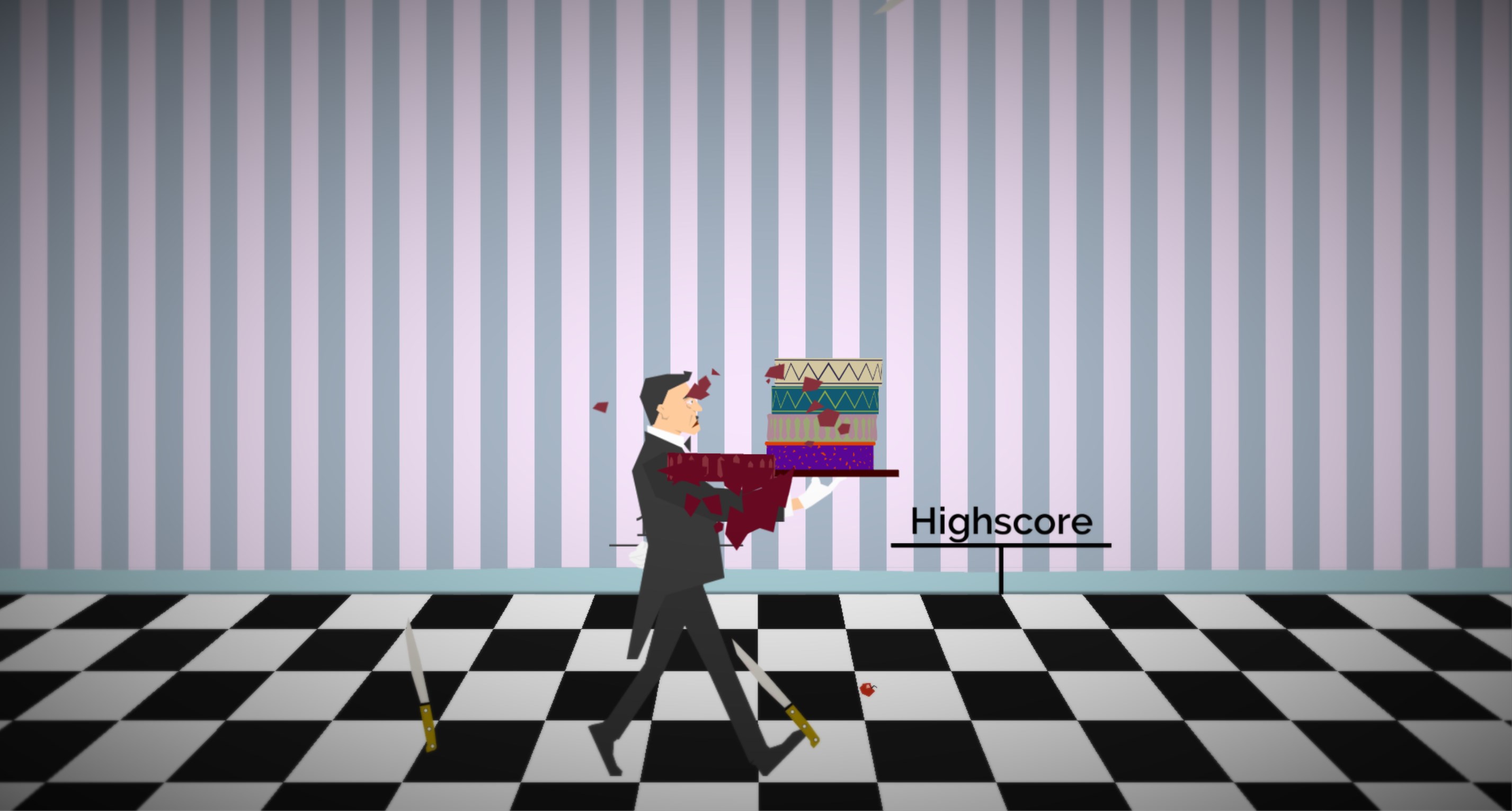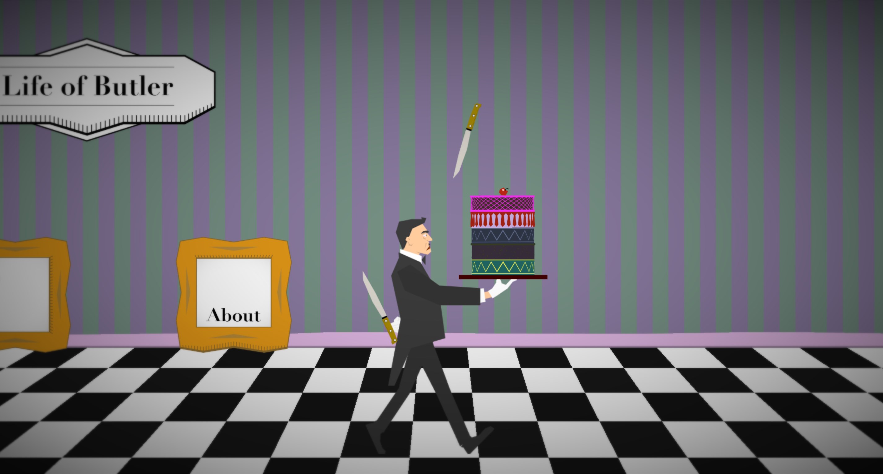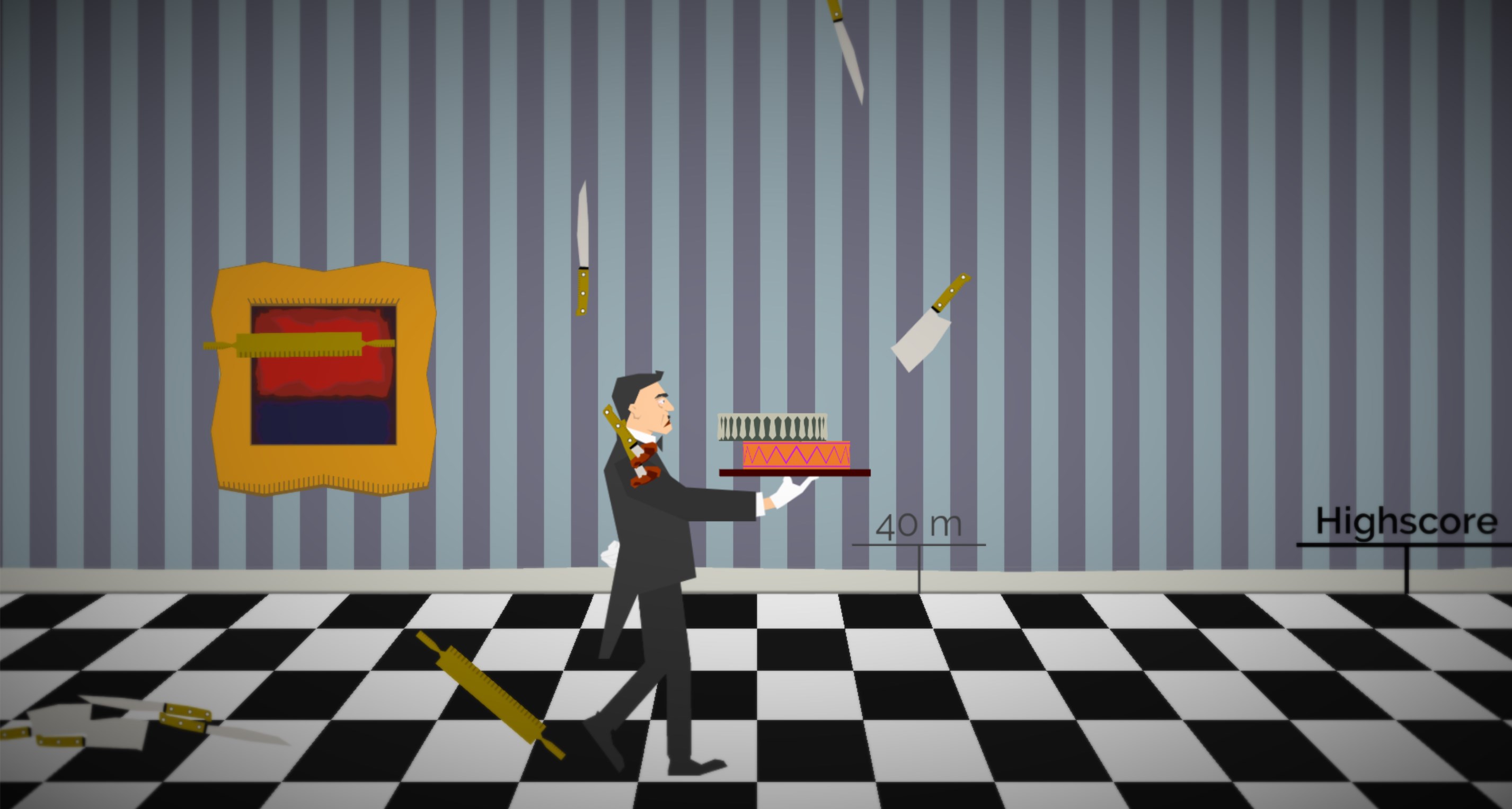 Jef the butler has received the task to transport a delicious cake through the hall of Brian.