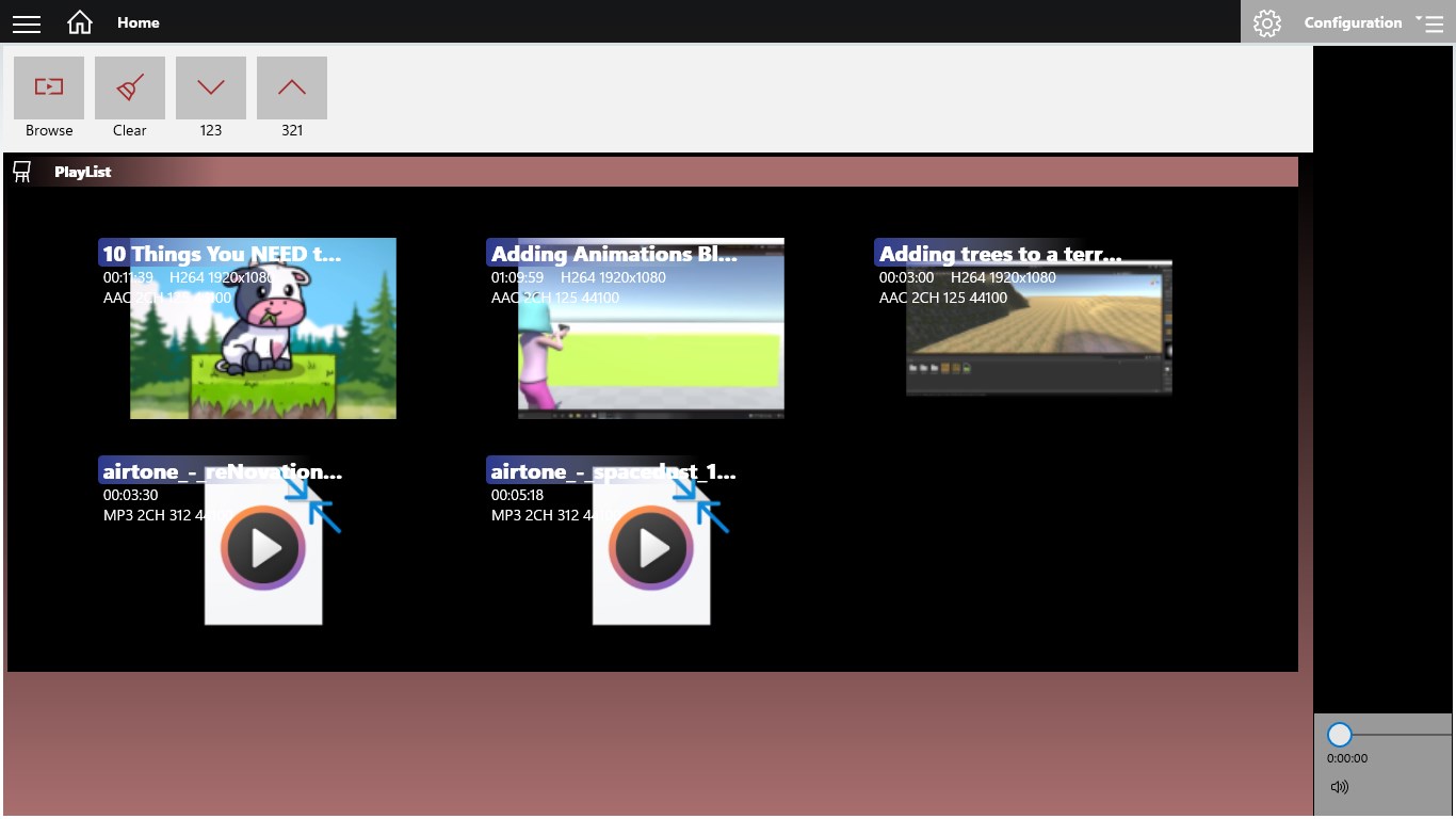 Media player, user can play audio files and video files with subtitles in a playback list. Open the playlist under the configuration.