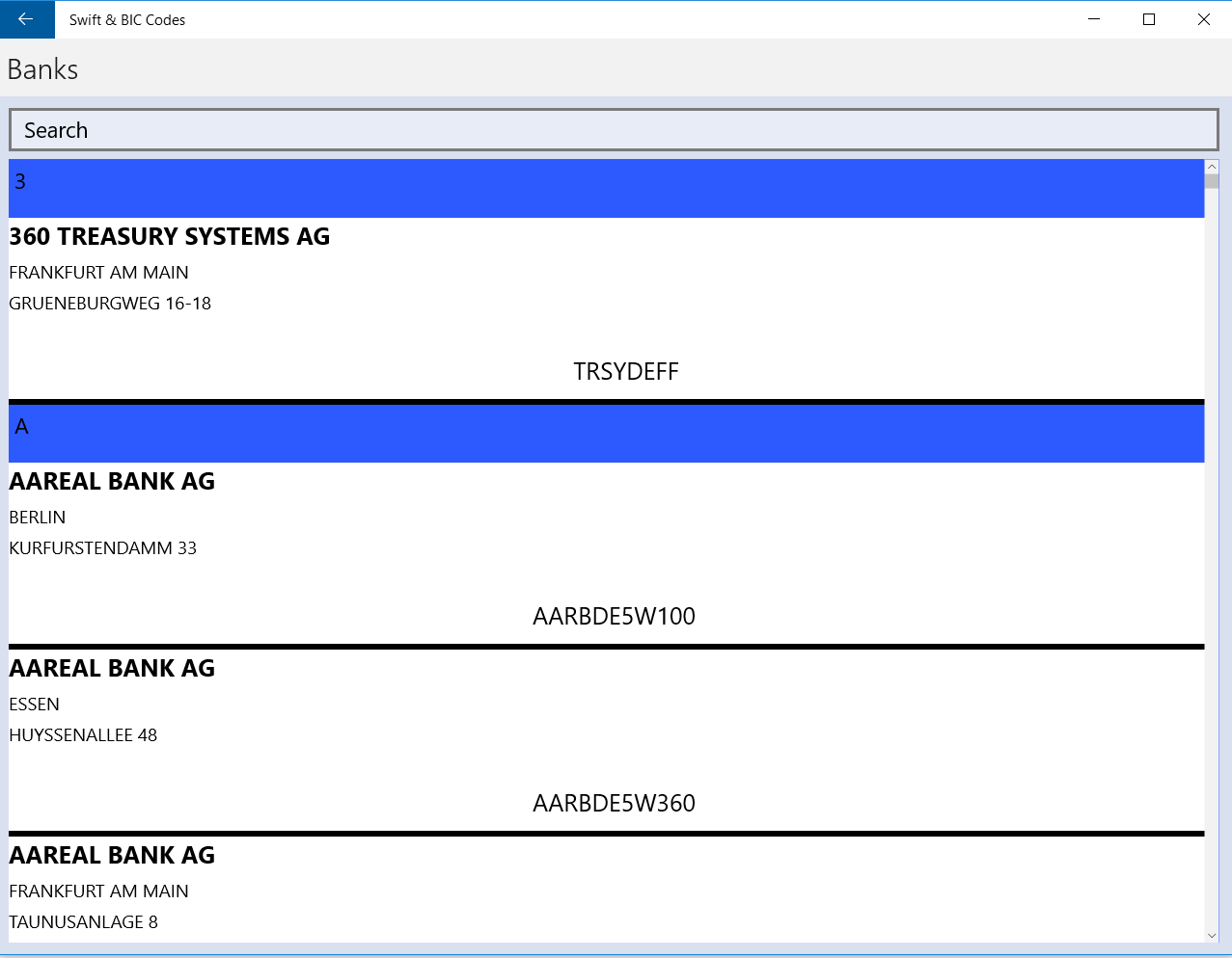 This application lists more than 6000 Swift and BIC codes. It works offline, and it does not need any internet connection.