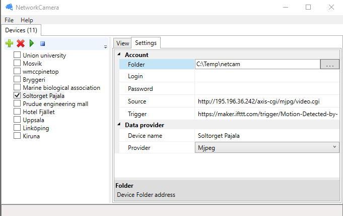 Windows desktop application for network cameras. Built in motion detection to save images of motion on disk or send notification messages to services like IFTTT.