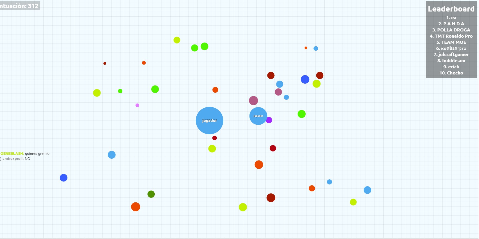 MEJOR que Agar.io desplaza tu célula por todo el tablero, absorbiendo a las células mas pequeñas y evitando a las mas grandes para ir aumentando de tamaño.