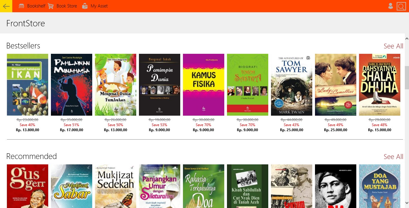 bp e-store is managed by Balai Pustaka, Jakarta, Indonesia. Balai Pustaka is the state-owned publisher of Indonesia and publisher of major pieces of Indonesian literature such as Salah Asuhan, Siti Nurbaya and Layar Terkembang. As a book lover you'll find in your hand a versatile book reader application to fullfill all your reading needs as well as comprehensive collection of books in our bookstore.