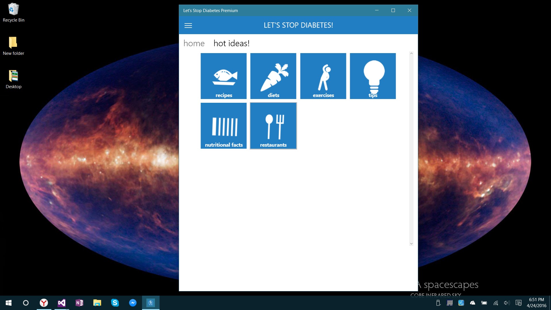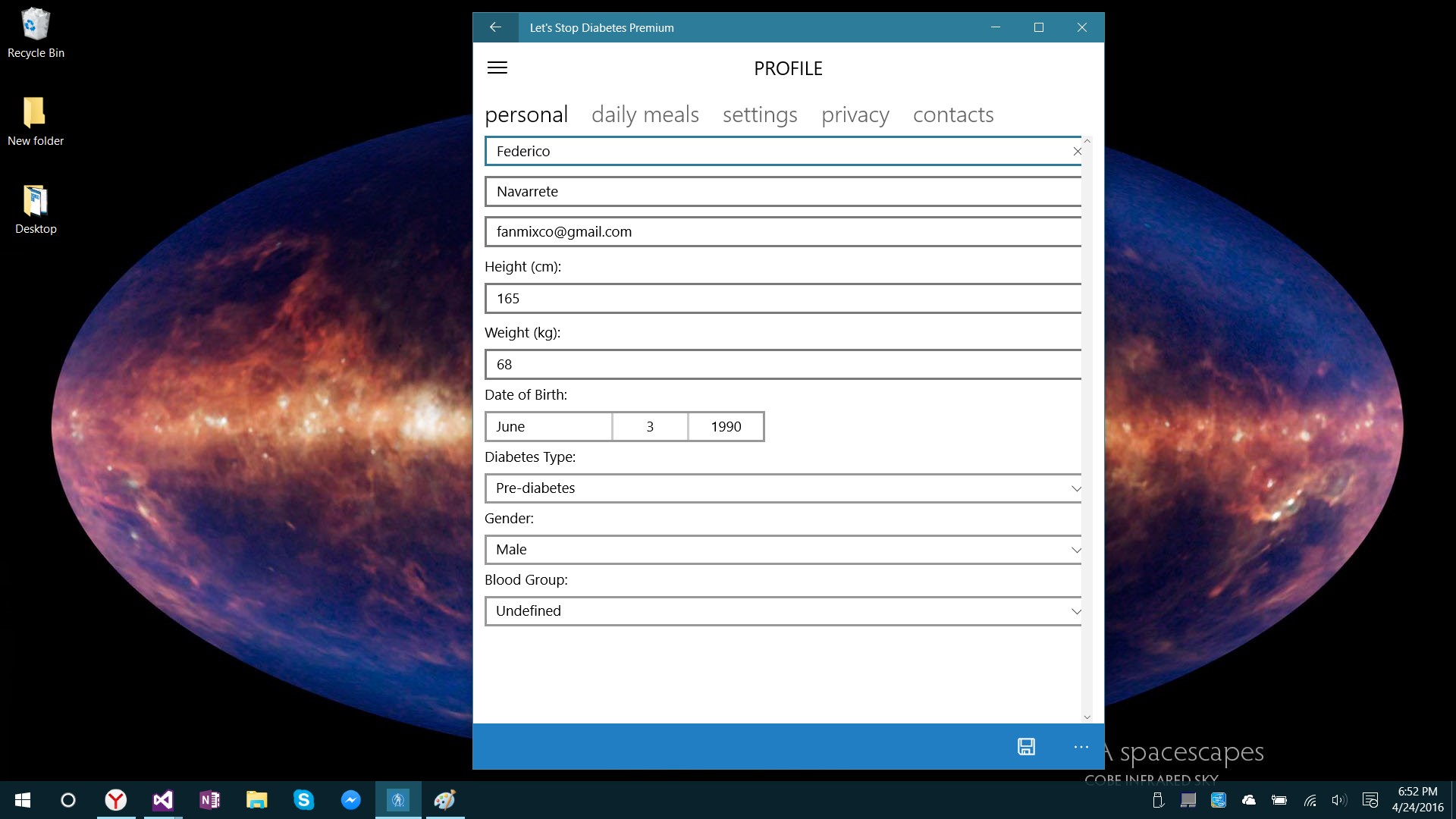 Let’s Stop Diabetes is a platform that has a main purpose to transform diabetics into Superheroes. We provide them with the powerful tools to improve their life. At the same time the blood test results that the diabetics share anonymously help to create real time worldwide map of this illness. Doctors use it to enhance the studies about this fatal disease. This project creates a new link between doctors and patients. The app is the primary mechanism for monitoring the health of the diabetic. When the user adds a new blood test result they can do it various ways- take a picture, say it or type. With the app they can track and control the evolution of the sickness with statistics that show the current week by default and allow users to understand effectively if the decisions that they are taking are the right ones. The app provides tips, recipes, exercises, challenges and awards. All of them look forward to promote a healthier lifestyle. Shared blood test results are used to create a map of diabetes. The map is one of the most innovative and unique parts of the entire platform because it is the centre where you can study diabetes worldwide. With results shared from anywhere regardless of any barrier without compromising confidential information. The clustering map shows the averages in mg / dl by default and can be clicked or searched to display details as the average of a region, sex, age, diabetes type, among others.