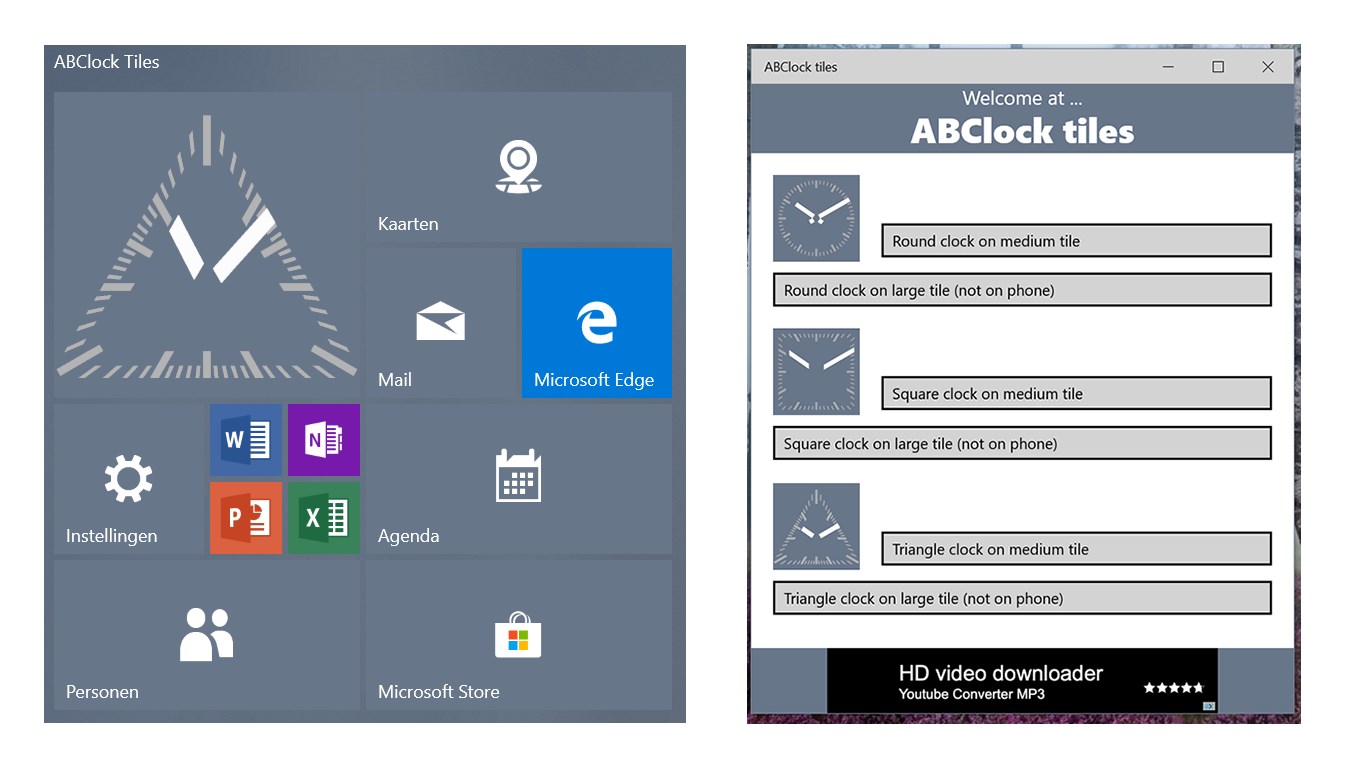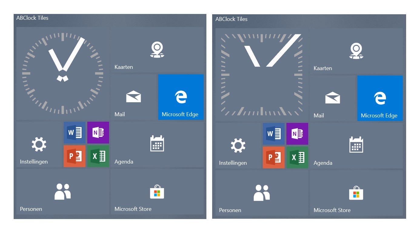 ABClock tiles, why this app name? A=Analog B=Backgroundtask C=Clock. This universal app provides three clocks (round, square, triangle) for medium or large tiles.