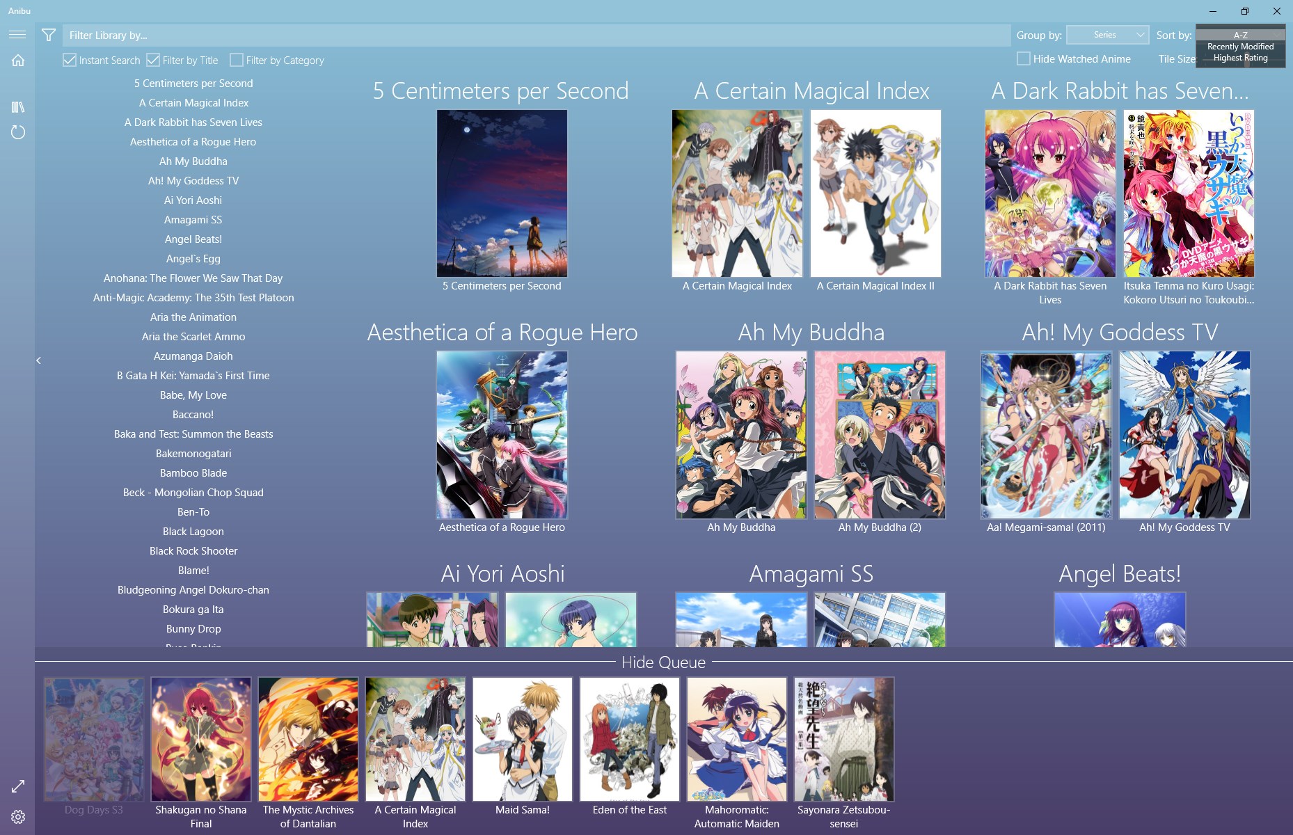 Media Library ManagementAniDB IntegrationHash-based File Information LookupVisual BrowserInstant Library SearchMyAnimeList Integration