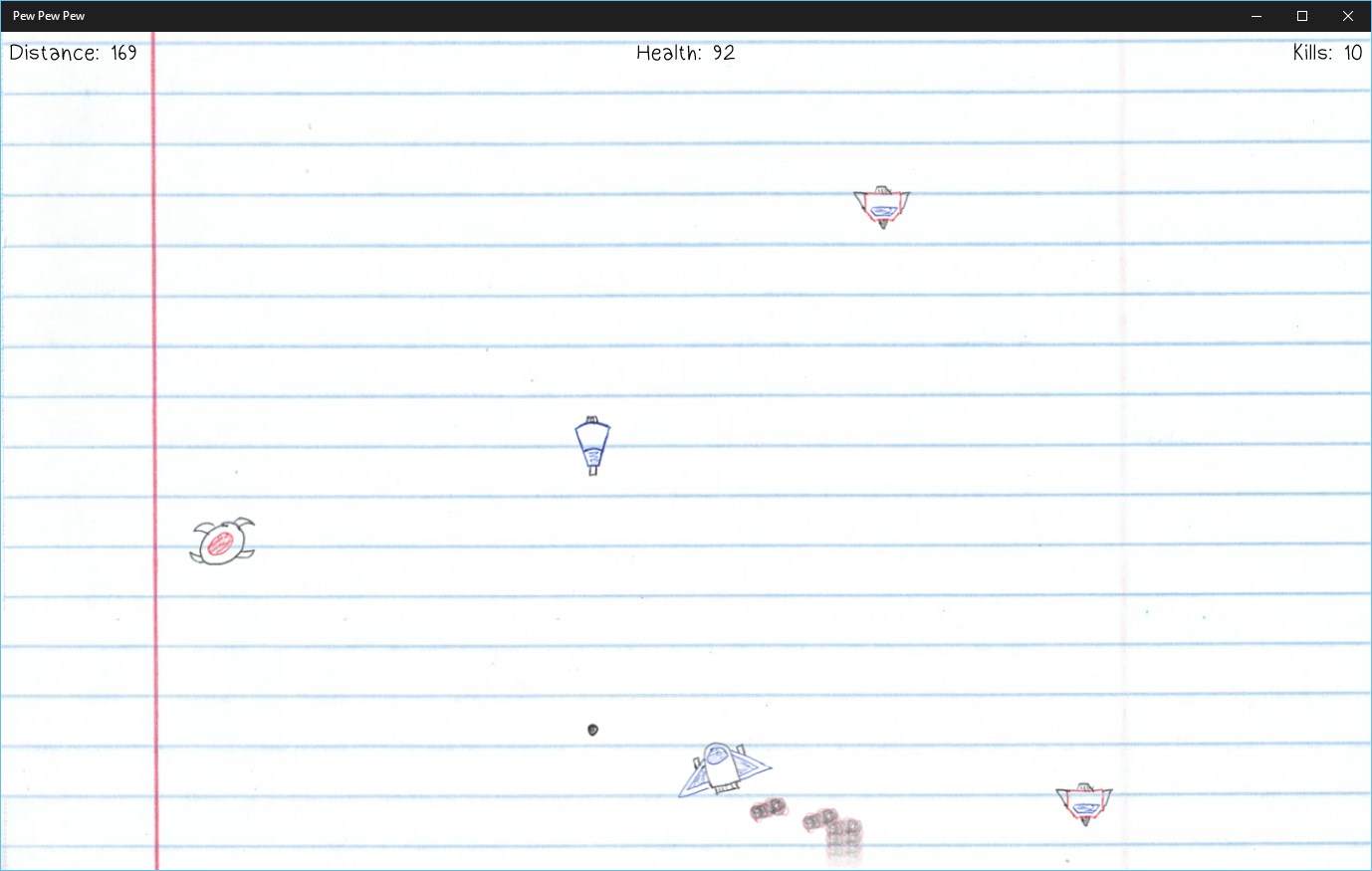 Gameplay is simple. Fly around in your little space ship shooting things and going pew pew pew! See how many kills you can get, finish achievements, and go for the top score on the global high scores list! Will the fun ever end? Nope. Pew Pew Pew features endless infinite arcade shooting action, fun hand drawn ink pen graphics, and is appropriate for adults and kids of most ages.