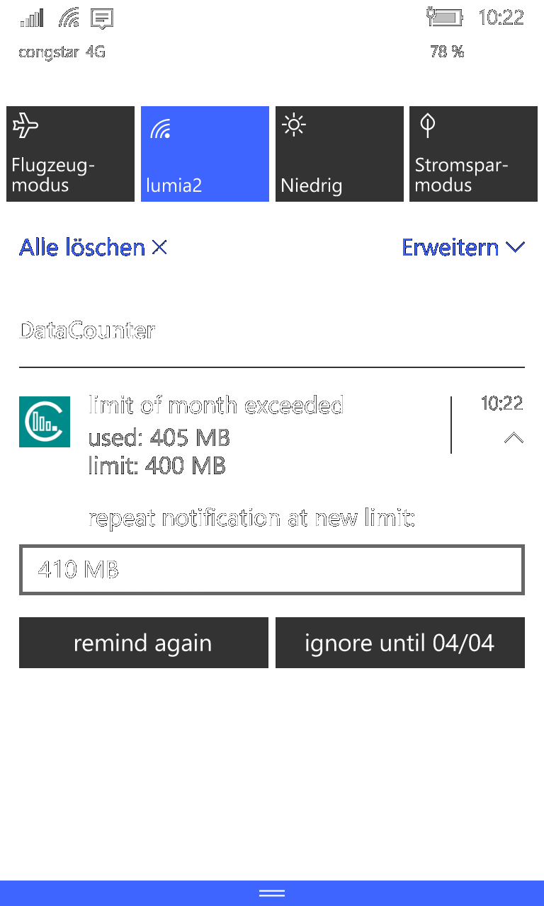 Lockscreen countdown: see at once when your data plan limit is nearly reached.