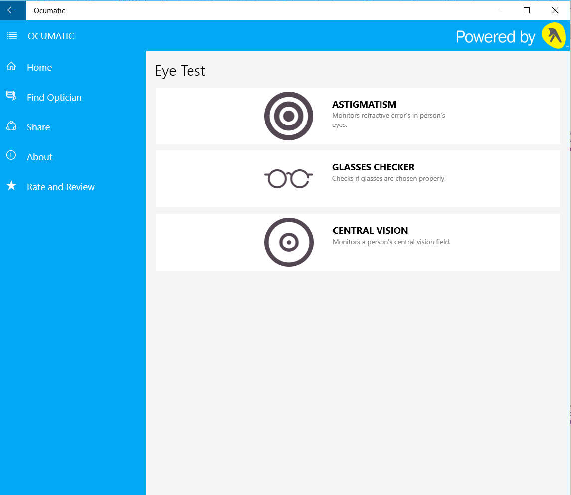 Ocumatic will help you test your vision and detect common eye problems to maintain good vision at all times, as well as provide you with information about opticians and optical store nearby you.