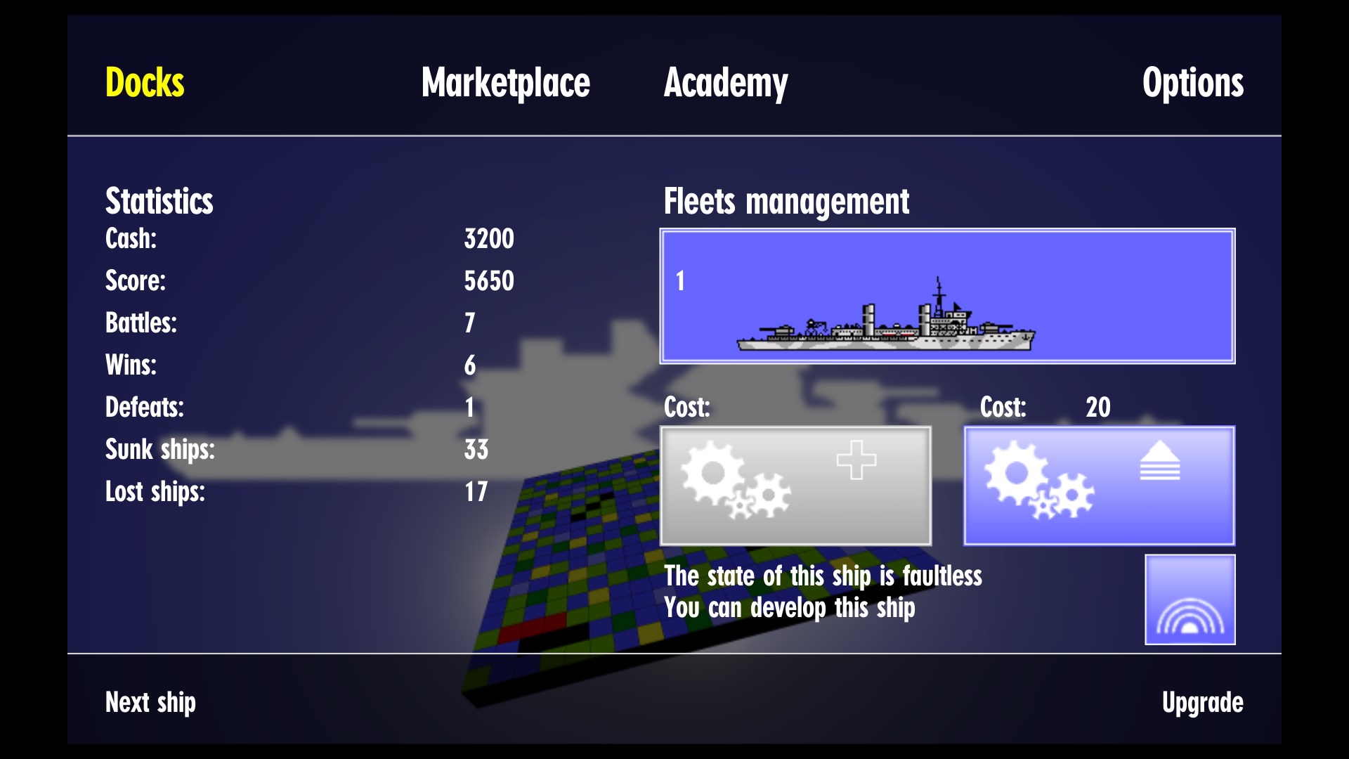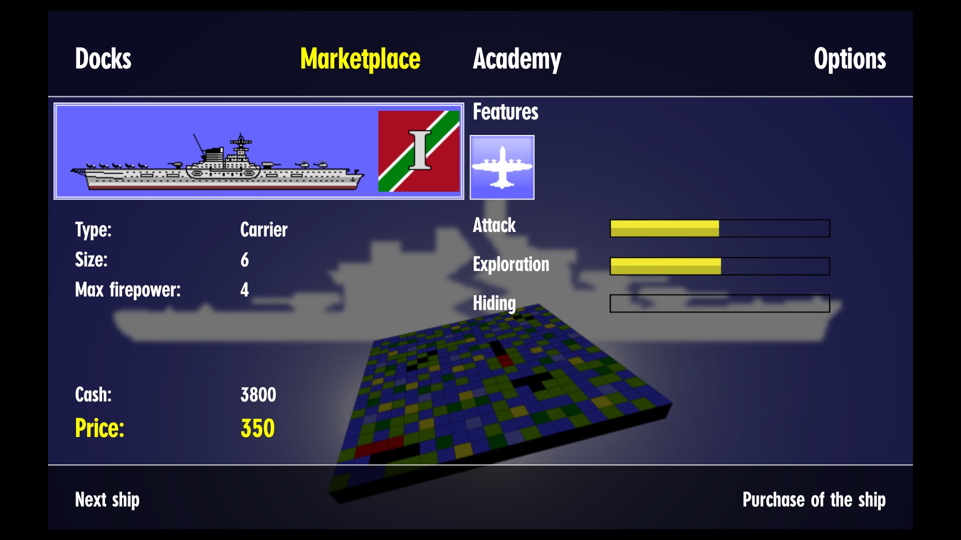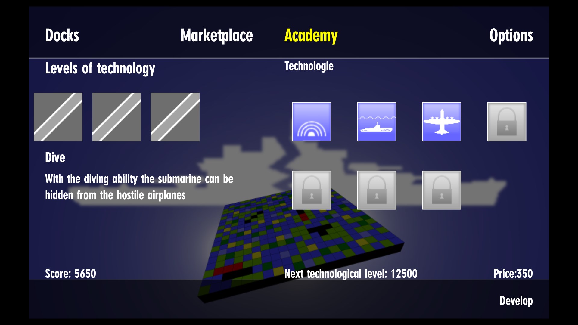 - 7 technologies, 5 technological levels: get more modern ships, equip them with sonar, better cannon, install reconnaissance aircraft on your carrier, etc. In the C64 Battle Ships AE, the technologies within the game brings the gameplay to a new level. The technological equipment of your ships effectively influences the three combat attributions of your fleet. Tune your fleet for attack, exploration, or hiding.