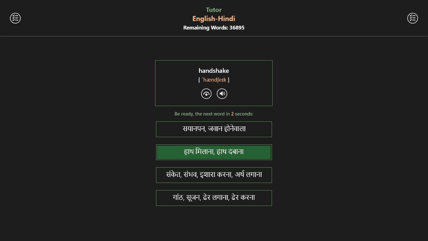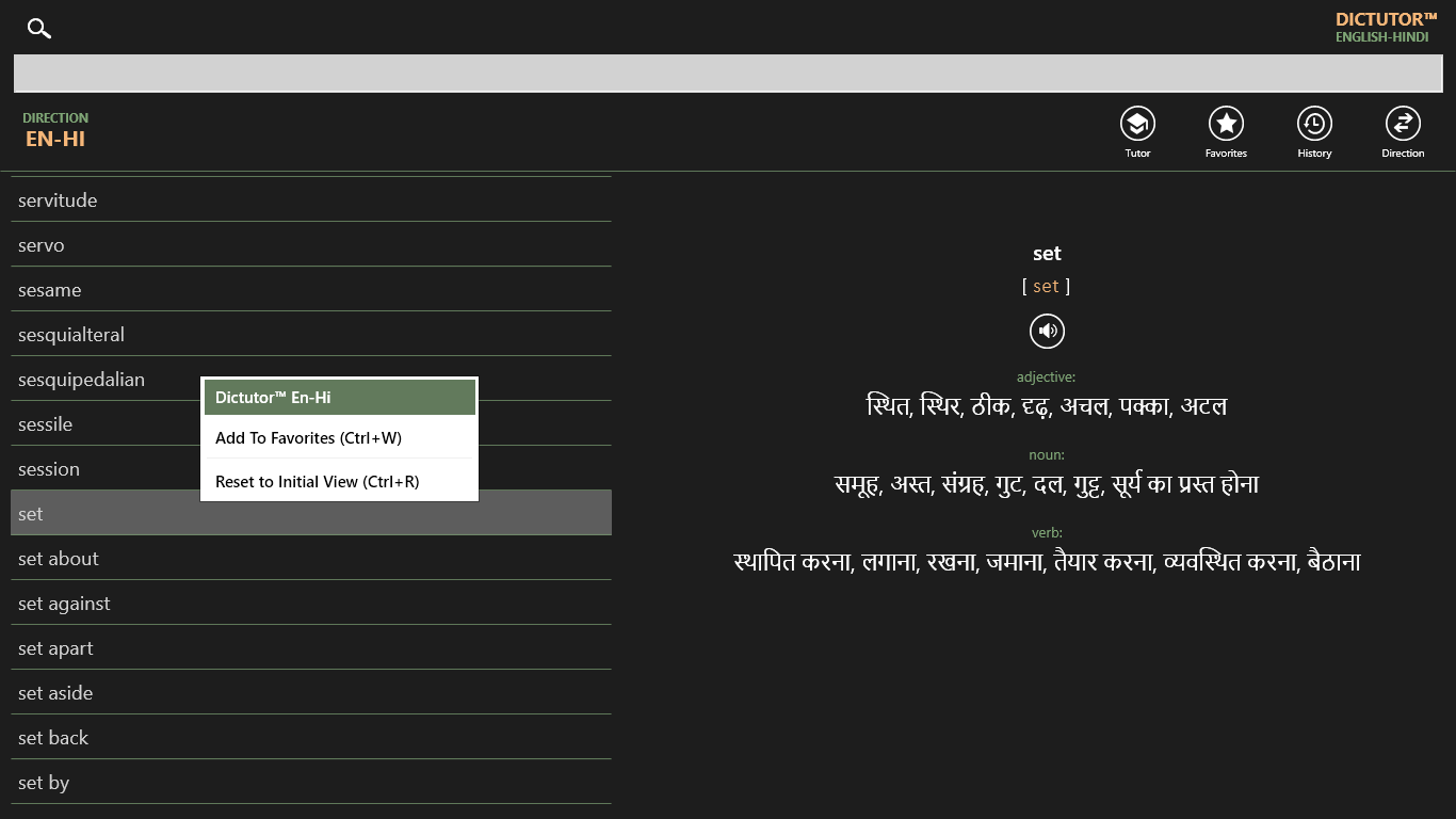 Dictutor EN-HI is an impressive bundle of universal offline English-Hindi and Hindi-English dictionaries with electronic tutor for Hindi speaking users. It’s the powerful tool for mastering English language. Dictutor lets you instantly translate and effectively learn new foreign words.