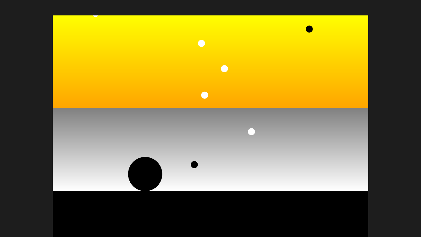 Grow your Ozmo and escape the gray atmosphere by absorbing spheres of the same color while avoiding spheres of the opposite color. Control your Ozmo with the left and right cursor keys, but don't push too hard or you'll spin out-of-control!