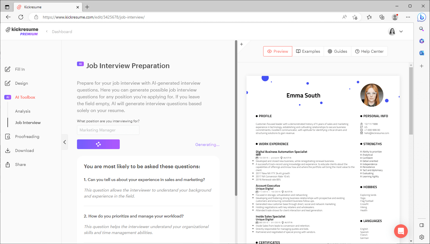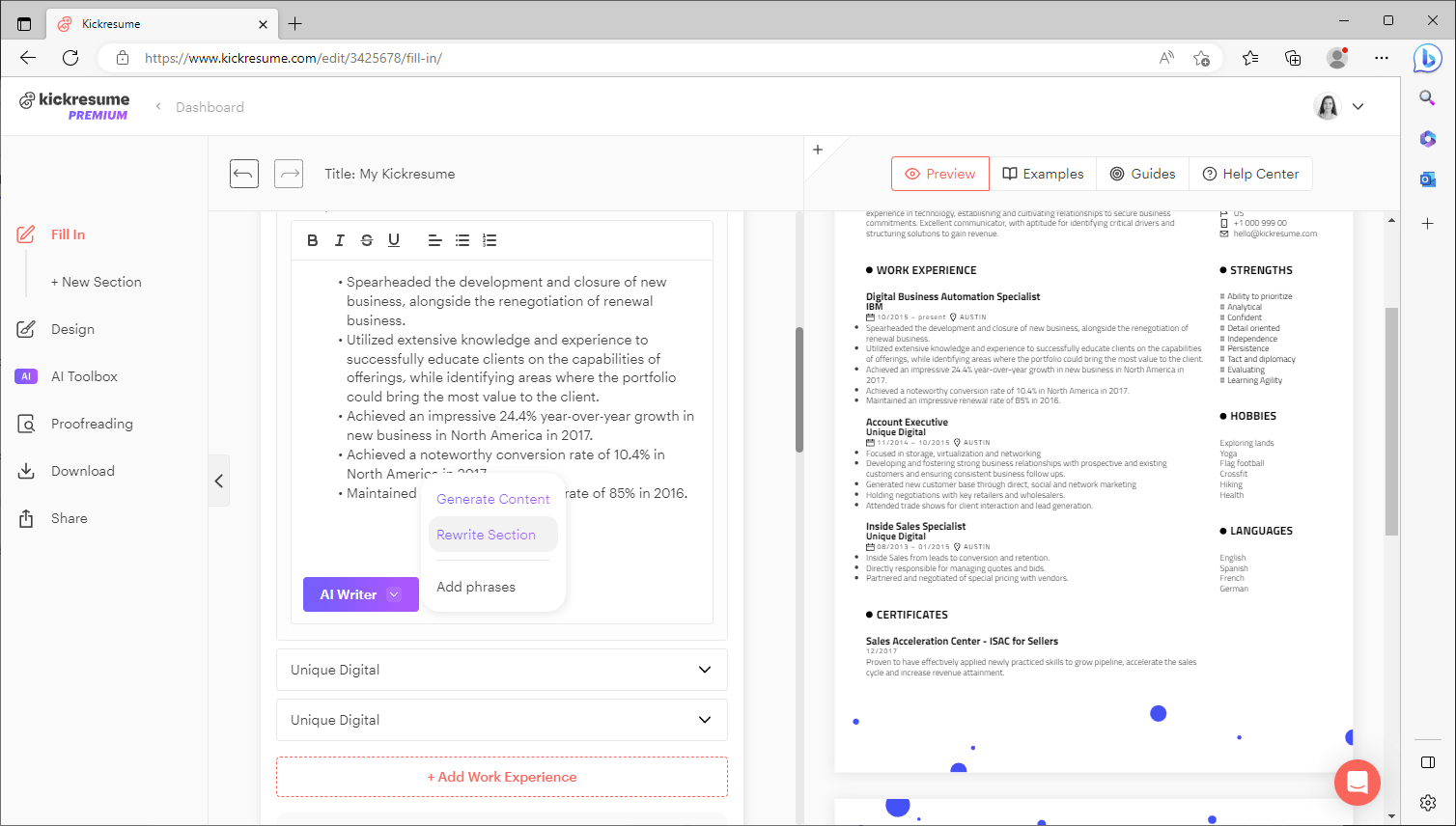 Step 4: Use Kickresume