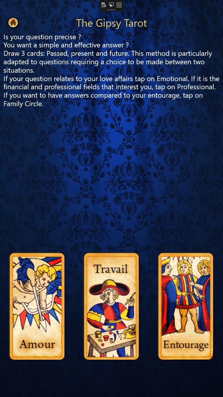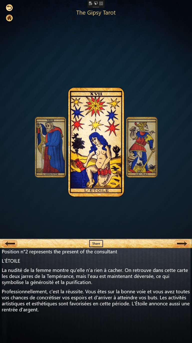 With Tarot Lite, you will be able to interpret the cards of the most famous and oldest divinatory tarot through the Gipsy Spread.