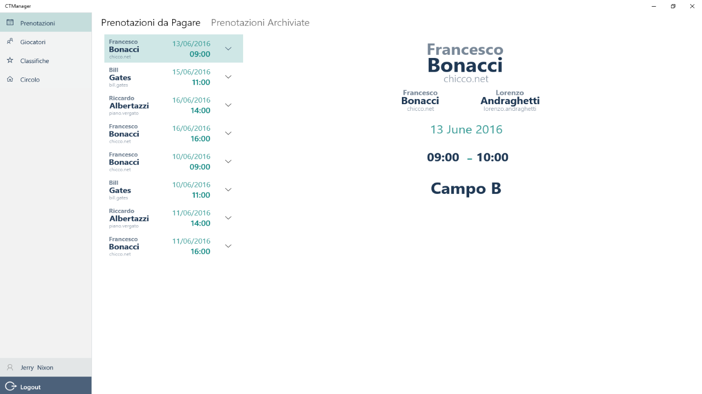 CTManager è l'applicazione gestionale per il circolo tennis CTVergato.