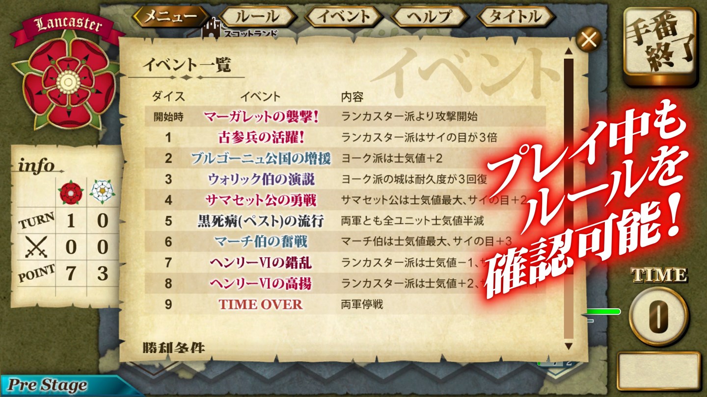 a.コンピューターと対戦(プレステージ、ランカスター派モード、ヨーク派モード、エクストラモード)