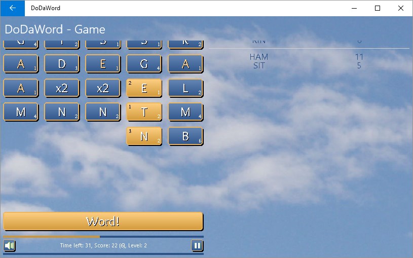 - DoDaWord is a great word game to play whenever you have a few minutes to spare. Try to beat your own, or your friends’, high score.