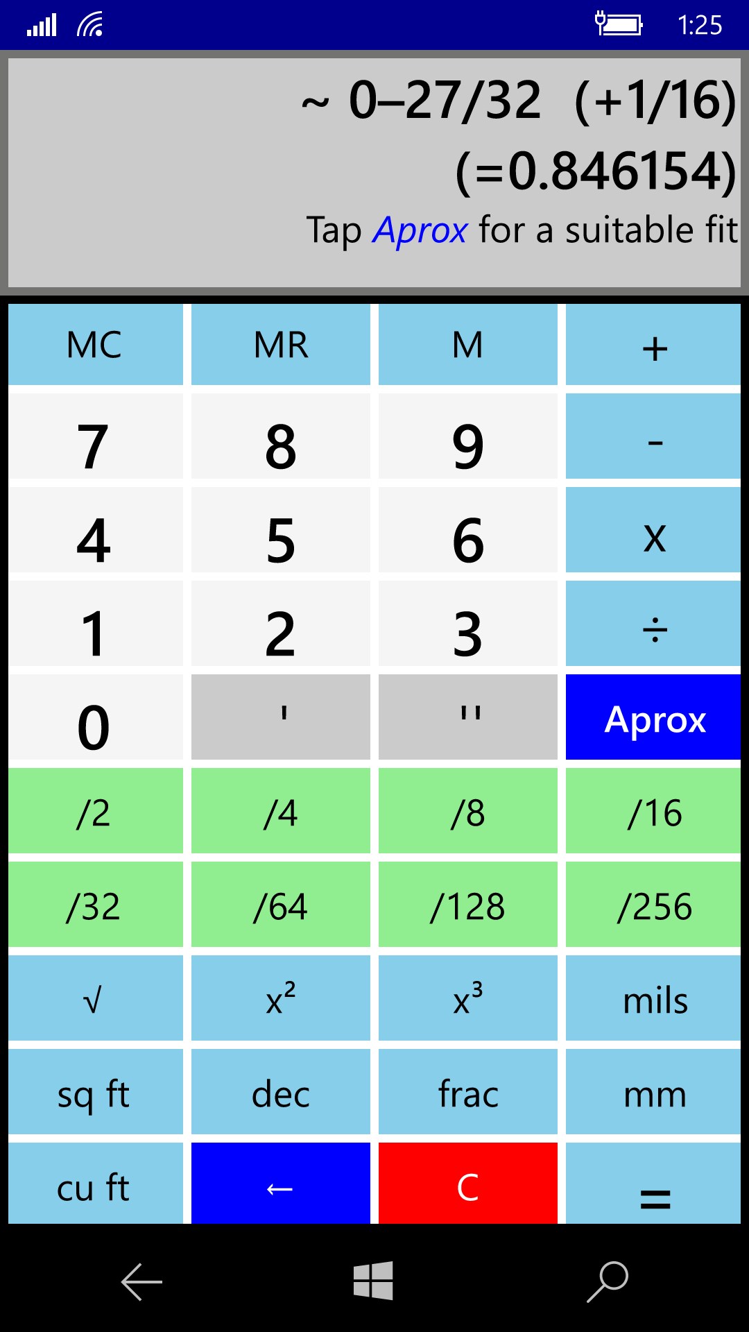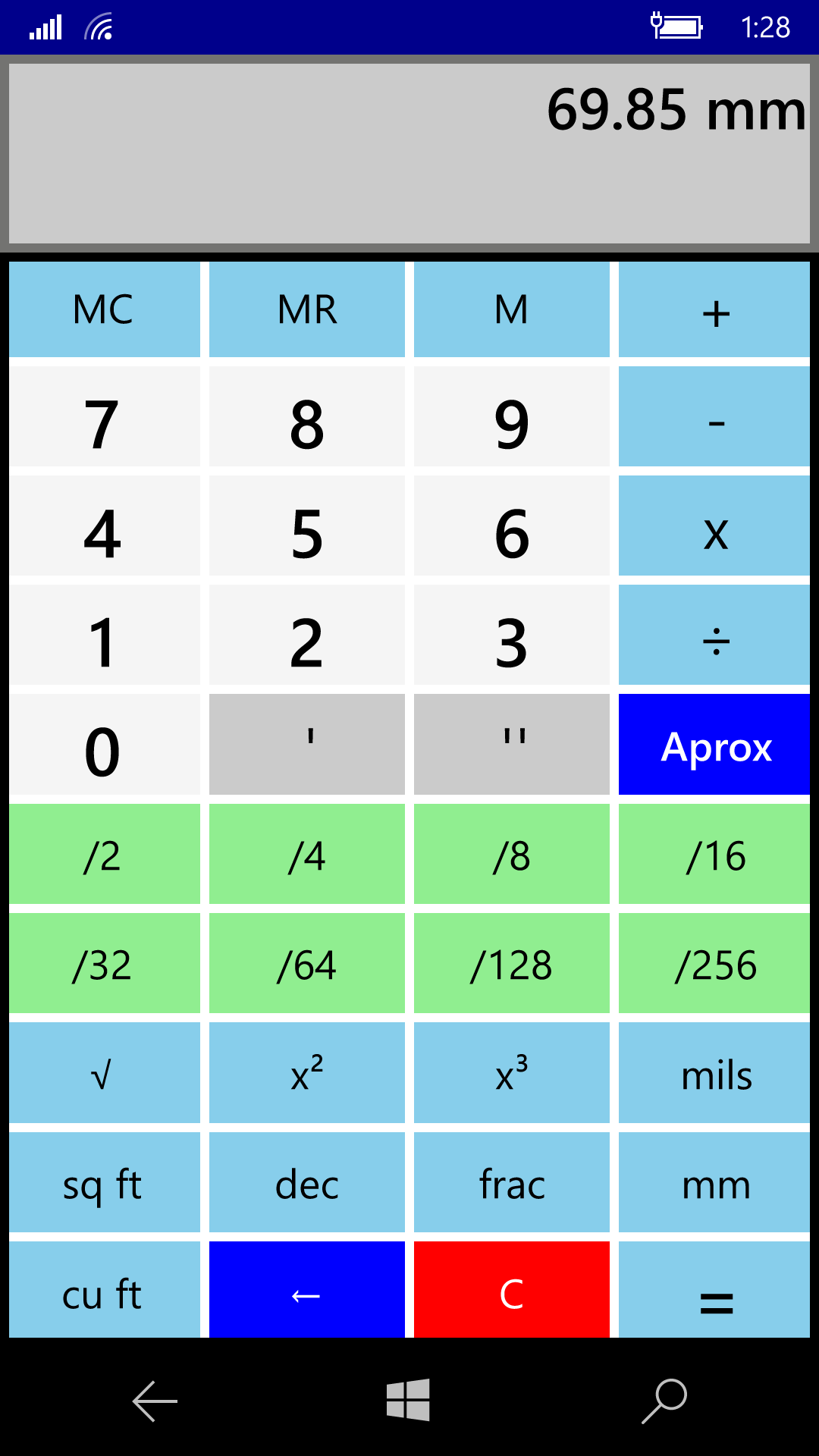 - All basic operations, addition, subtraction, multiplication, and division, are performed in inch and standard fractional inch, with the result also in inch and standard fractional inch, making it easy to relate back to the scale for any practical means;