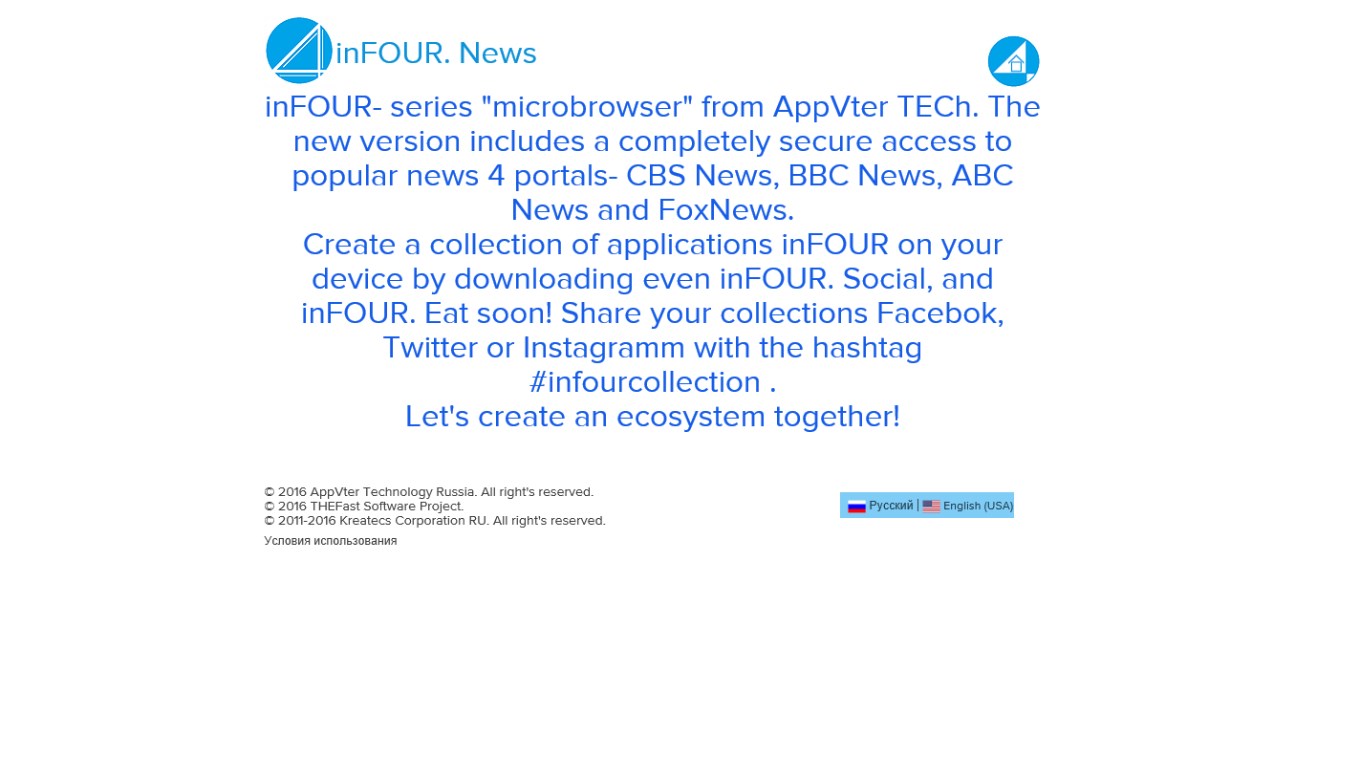 inFOUR- series "microbrowser" from AppVter TECh. The new version includes a completely secure access to popular news 4 portals- CBS News, BBC News, ABC News and FoxNews.