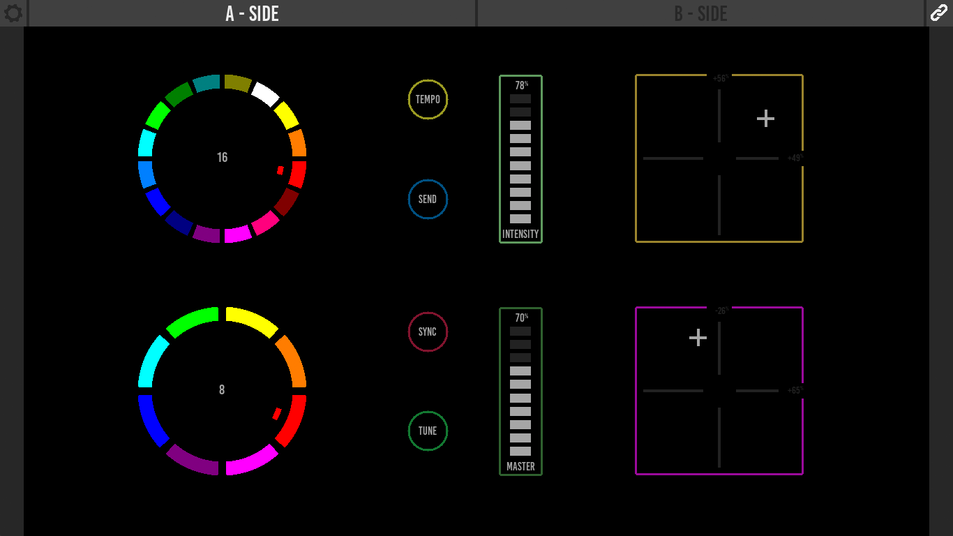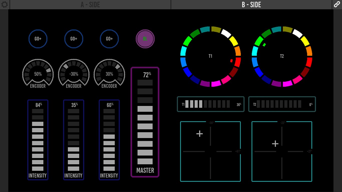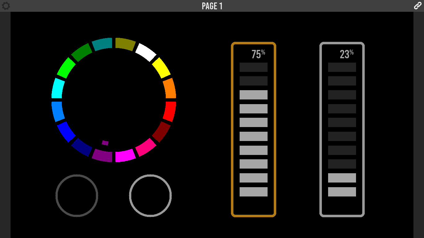 There is a lot of cool equipment available that can be controlled via UDP or OSC messages. You can choose Kiosc to be the stylish front-end for triggering all these video, audio and lighting devices. When designing the layout of your dashboard you can combine buttons, sliders, encoders, check-boxes and colour-pickers. You can drop in your logo or any other graphic.