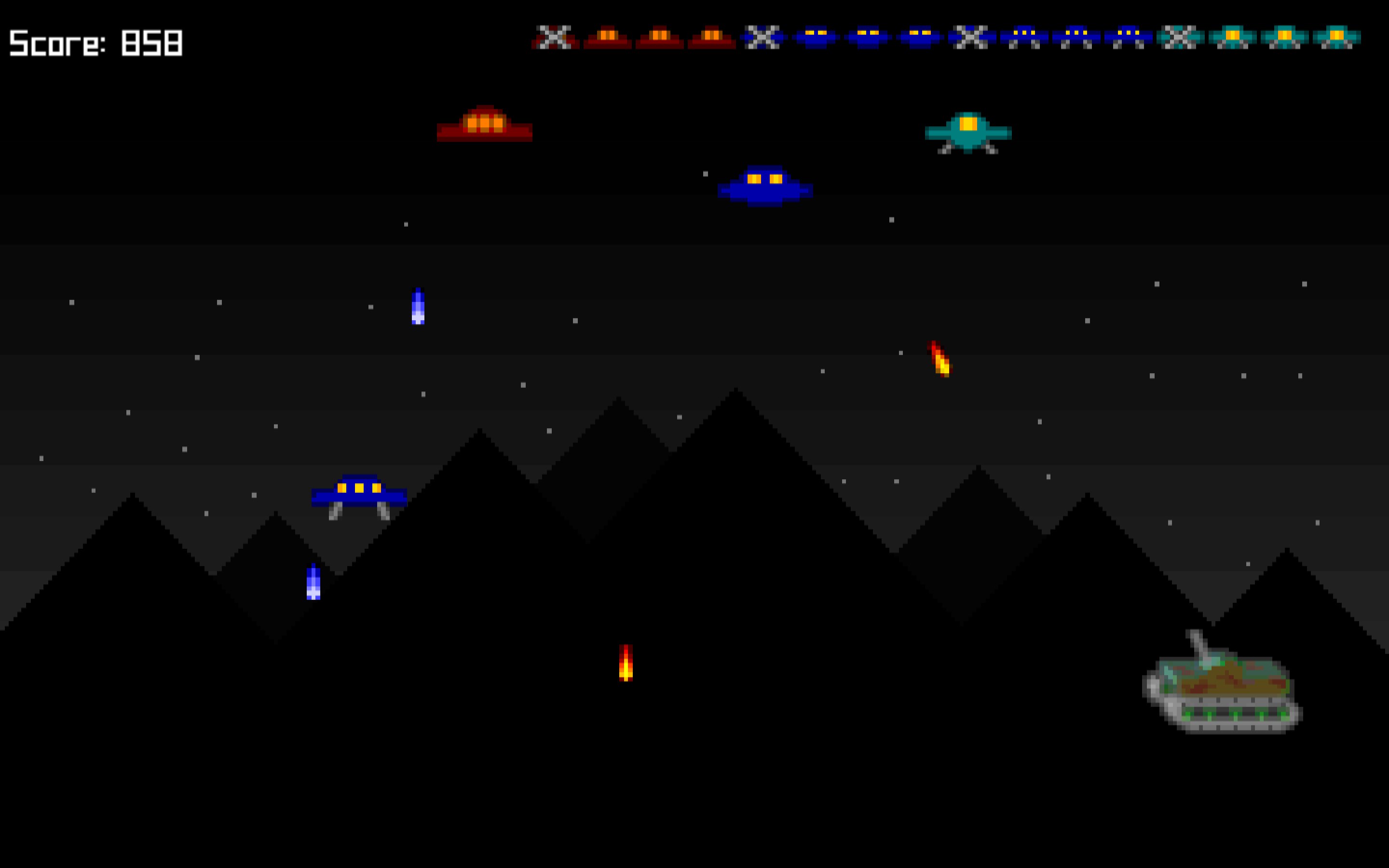 The cruel aliens from the dark side of the universe has decided to annihilate all of mankind. They have invested in state of the art war UFOs with deadly weapons, and you are the only one who can stop them. You are equipped with the anti-UFO tank "UFO Hunter", the aliens' worst nightmare. It will be a tough fight. The existence of mankind lies in your hands. Good luck!