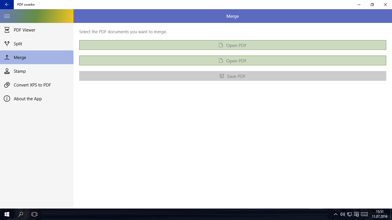 • PDF documents can be opened by dropping them on the respective "Open PDF" buttons