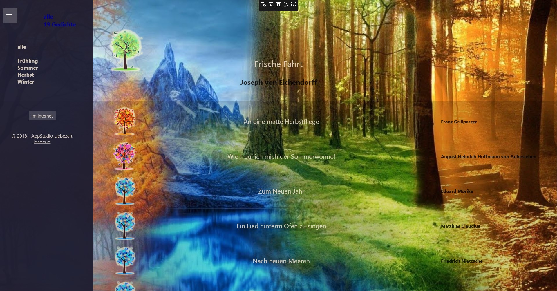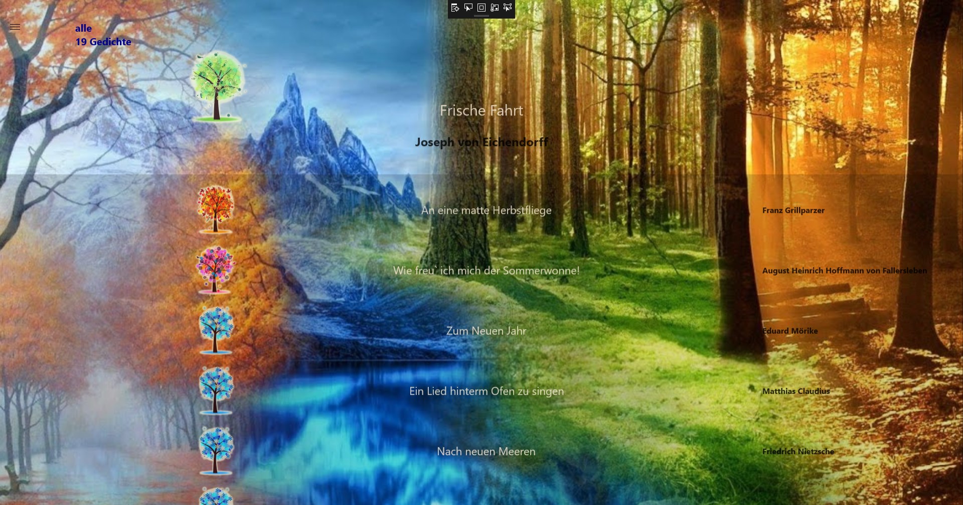 Eine Gedichtsammlung klassischer deutscher Gedichte inhaltlich sortiert nach den beschriebenen Jahreszeiten.