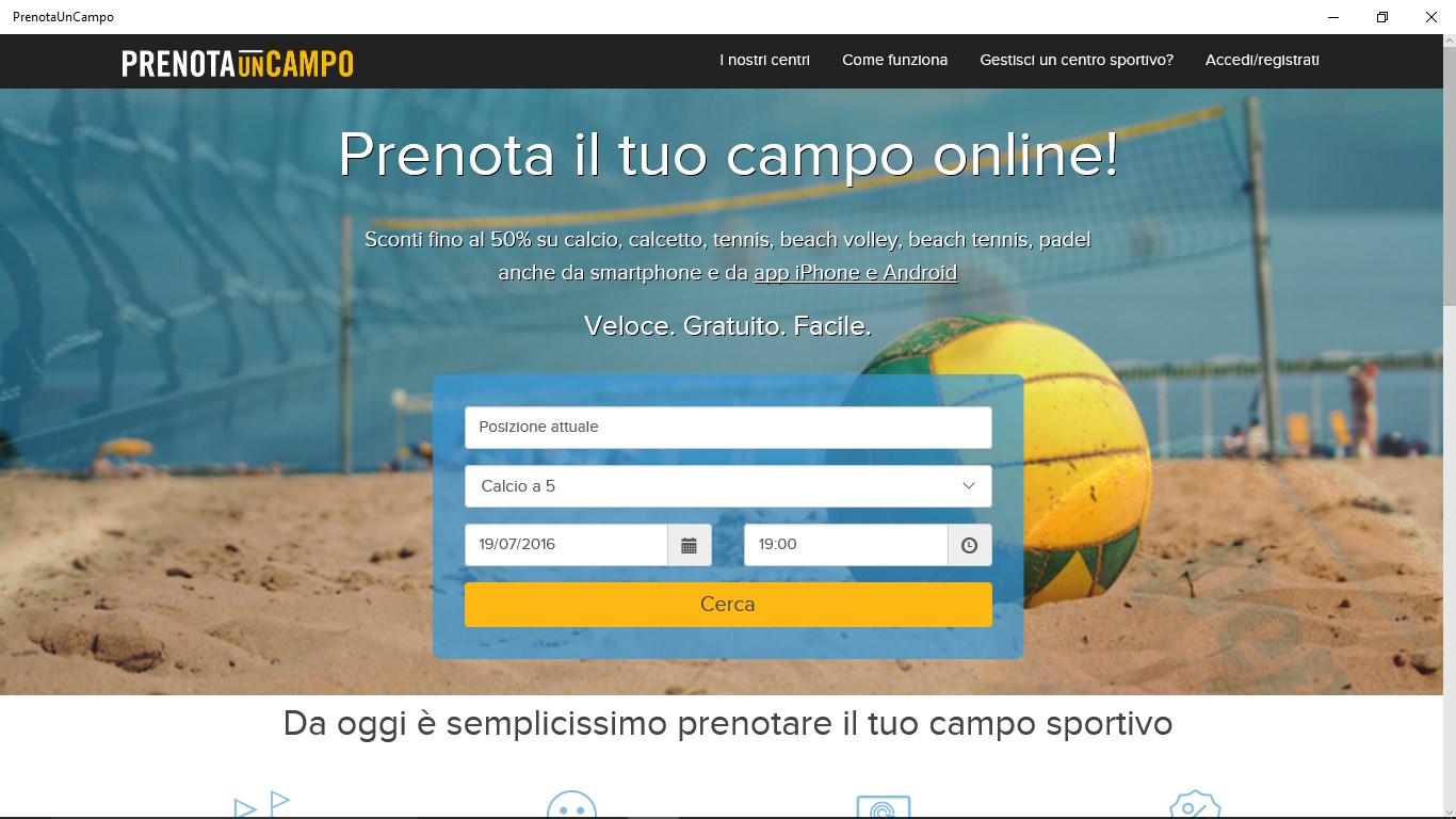 Prenota da app il tuo campo sportivo, sfrutta i nostri sconti fino al 50%. Calcio, Calcetto, Tennis, Beach Volley, Padel e tanti altri sport ti aspettano!