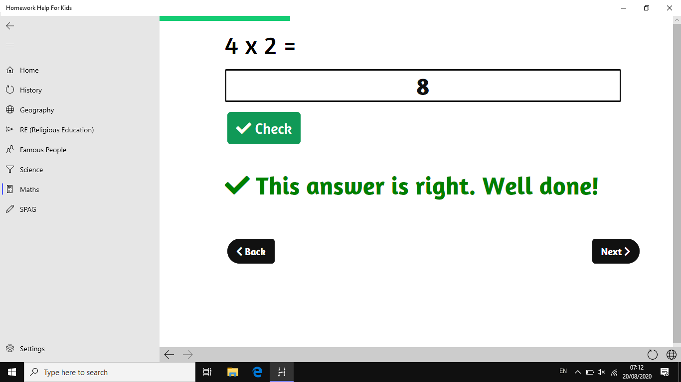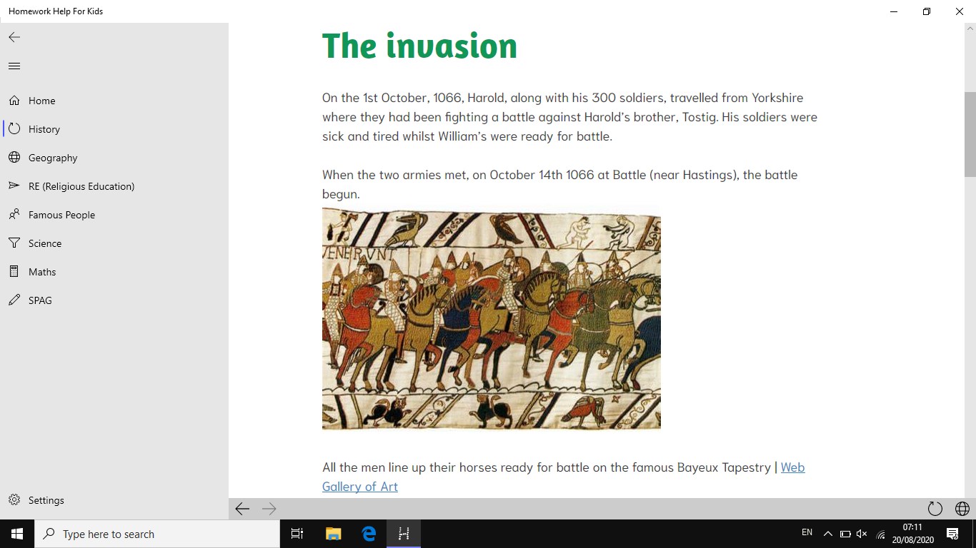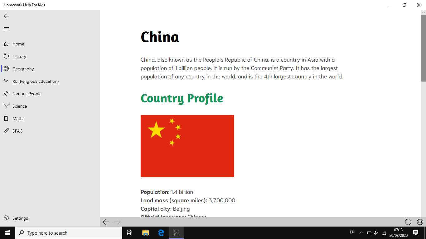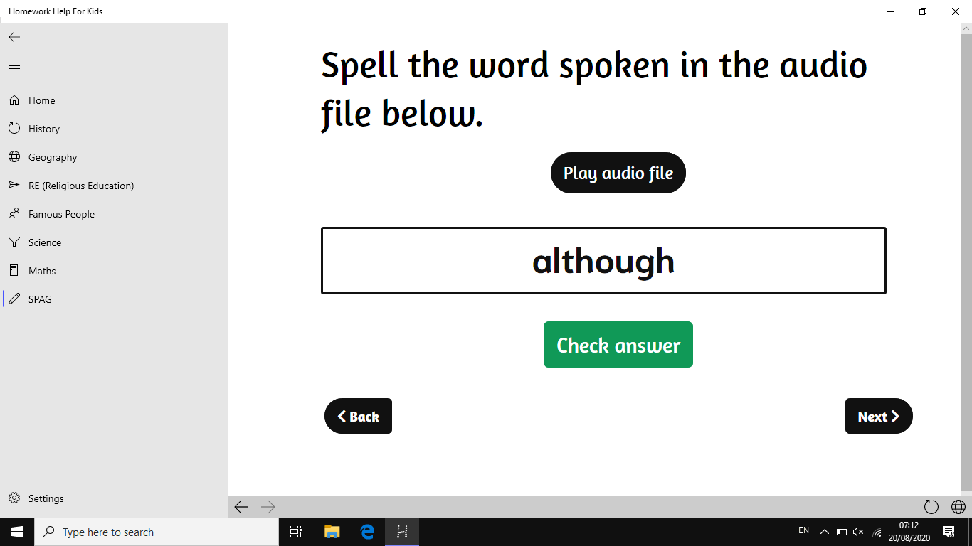 Follows the UK National Curriculum for KS1-KS3 (4-13 years old)Absolutely ad-freeHelps you with your homework for many subjects: Geography, Science, Maths and moreA SPAG page to get Years 5 & 6 ready for learning about spelling, punctuation and grammar in SeptemberCan help children with homework from 4 until they\'re 13-14 years old.An email address which you can email to if you\'re having any problems with the app (link below)Fact files for all six religions- each with their religious symbol.Easy-to-digest explanations for Maths.Do quizzes that will test what you have just learnt.Learn how to add, subtract and more, before trying it for yourself.Spelling tests based on past SATs papers (with audio, of course.)