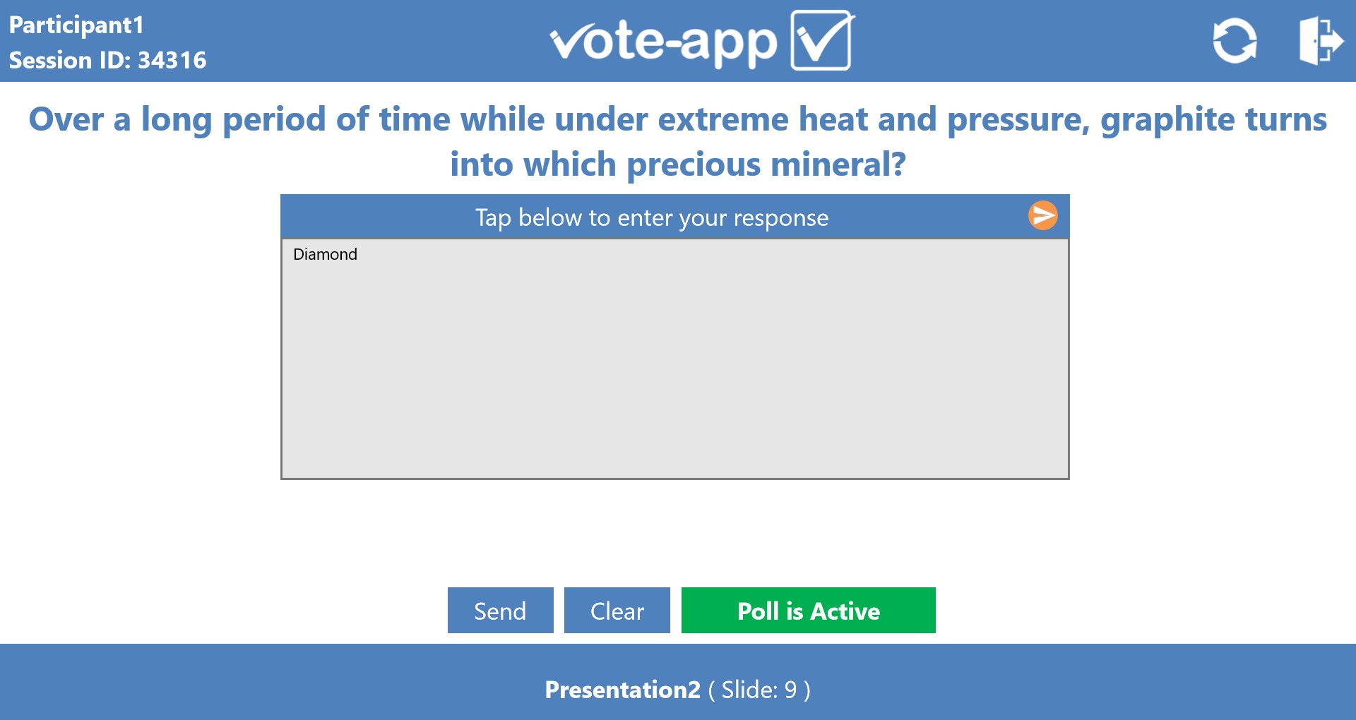 The iVote-App is used by participants to respond to the polling slides created with the iVote PowerPoint Add-in. The iVote Add-in seamlessly integrates with PowerPoint allowing for easy creation of question slides.